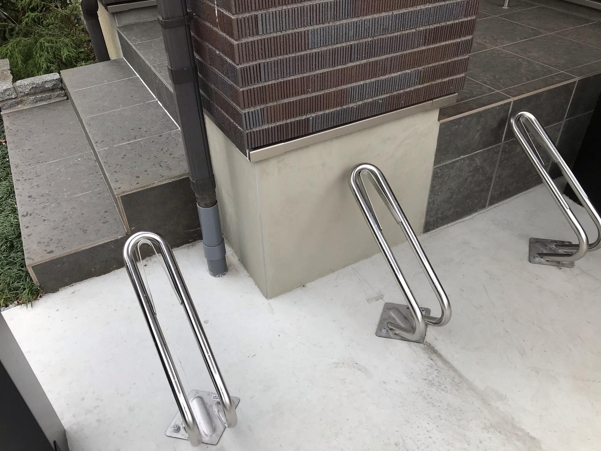 住宅に調和するサイクルポートとサイクルスタンドを取付けました。植栽を撤去し花壇を解体しての駐輪場の造作工事です。解体後の外壁は既存壁と同様のタイルと割石レンガで仕上げました。