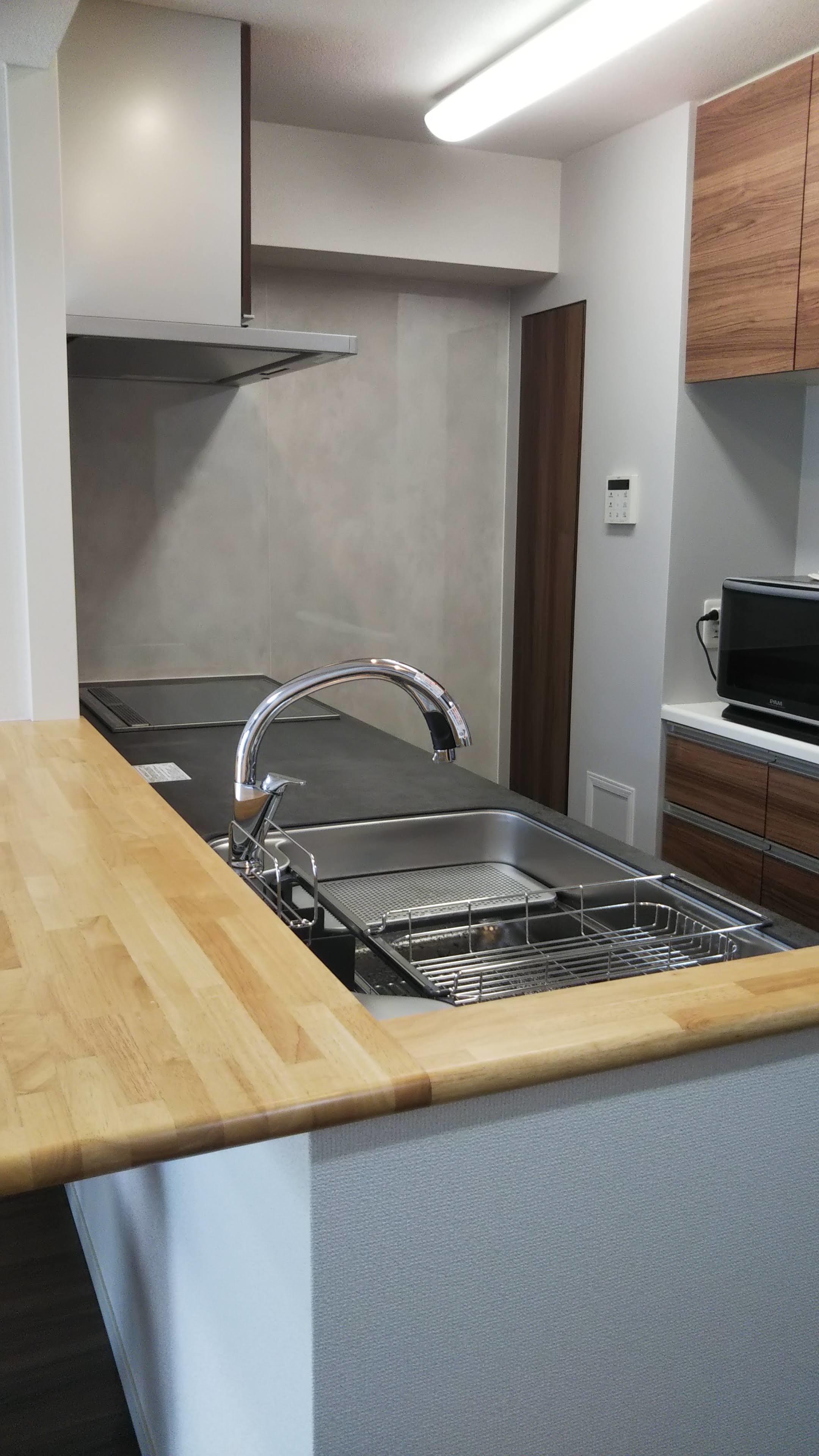 とてもきれいなキッチンでしたが、使い勝手を重視してリシェルSIのキッチンをご選定いただきました。セラミックトップカウンター・IHヒーター・タッチレス水栓・Wサポートシンクなどお料理上手な奥様の調理がラクになる快適なキッチンになりました。