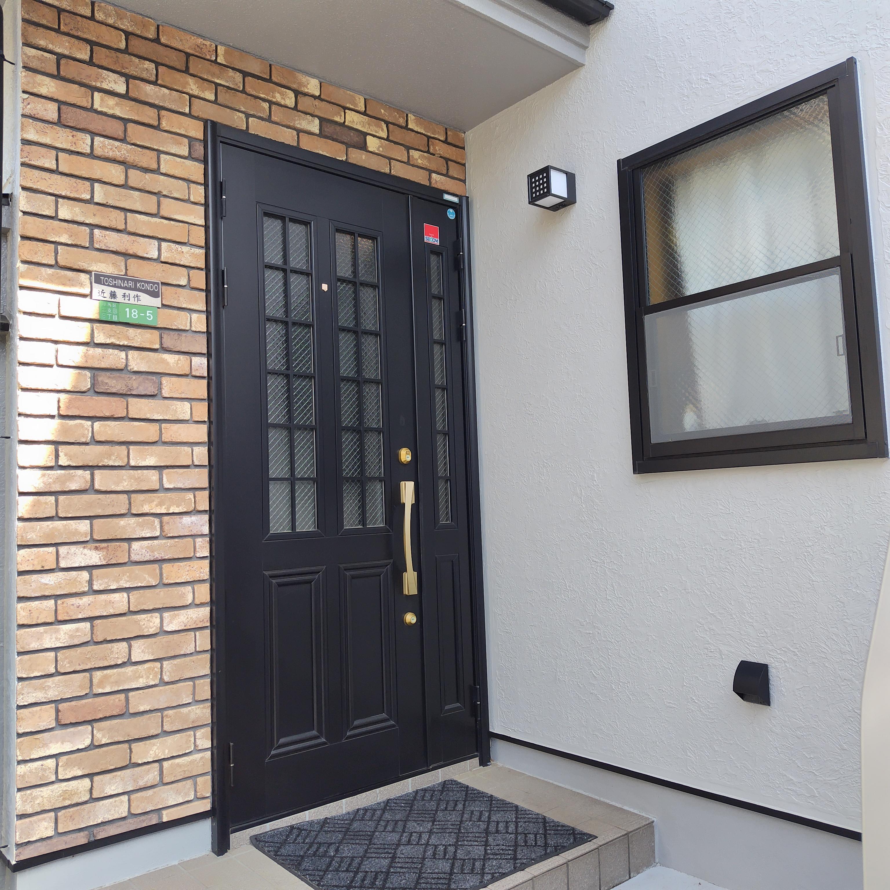 夏でも涼しく快適に過ごせるよう採風仕様の玄関ドアにリフォームいたしました。ドアの鍵を閉めたまま採風出来るので防犯対策も万全です。スマートロックシステムをご採用されたので、鍵を取り出さなくてもワンタッチで施解錠することができます。木目調のベーシックカラーの玄関ドアは外観にマッチして洗練された印象を与えます。