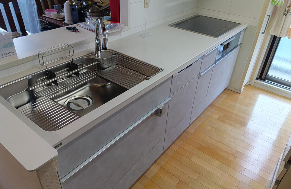 壁タイルの既存流用のため、既存を解体する時にキレイの壊すことができるか、仕上がった時に汚い部分が見えないか・・・を考え、施工士と打ち合わせを重ね、シュミレーションしました。 タイル下のクロスがしっかりと貼られているかどうか不安でしたが、やはり貼られておらず、緊急用で持参していたパネルを急遽貼る事で、綺麗に仕上げるようにしました。 「キレイに仕上げてくれて、ありがたい」という声を頂きました。