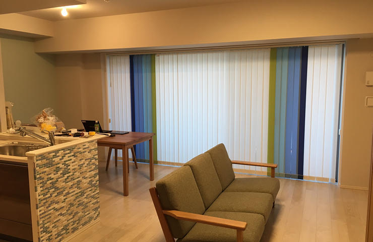青とグリーンをテーマカラーにしたい。後付け感のないキッチン収納が欲しい。