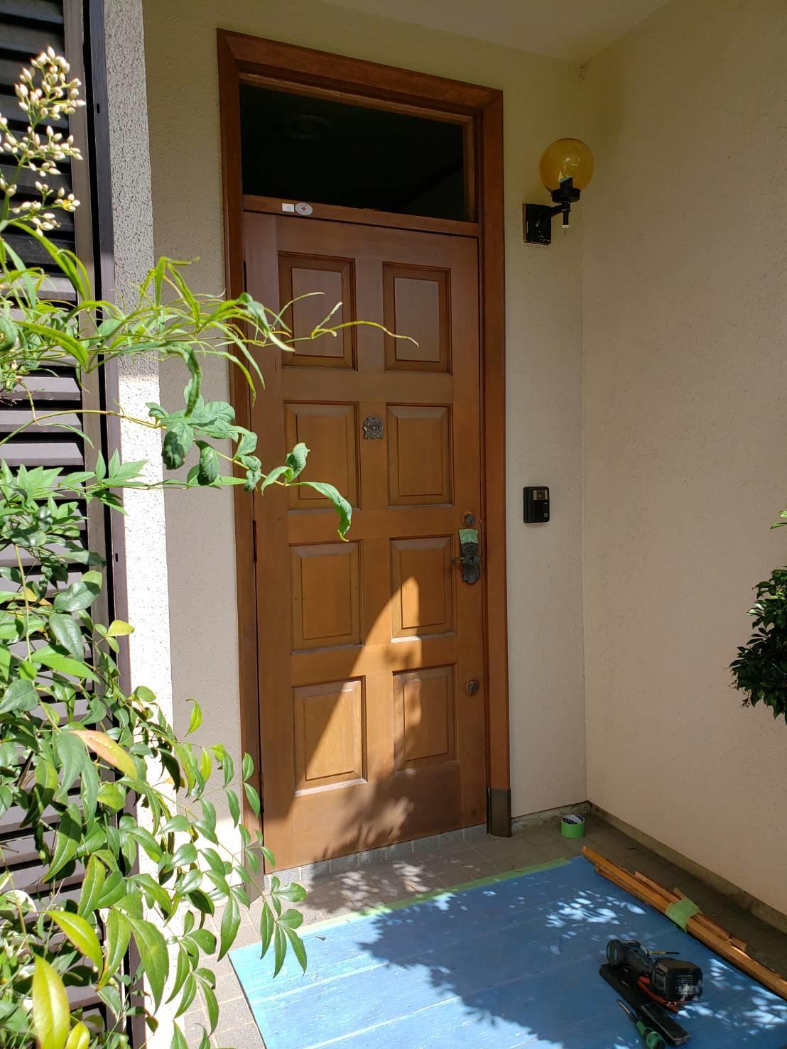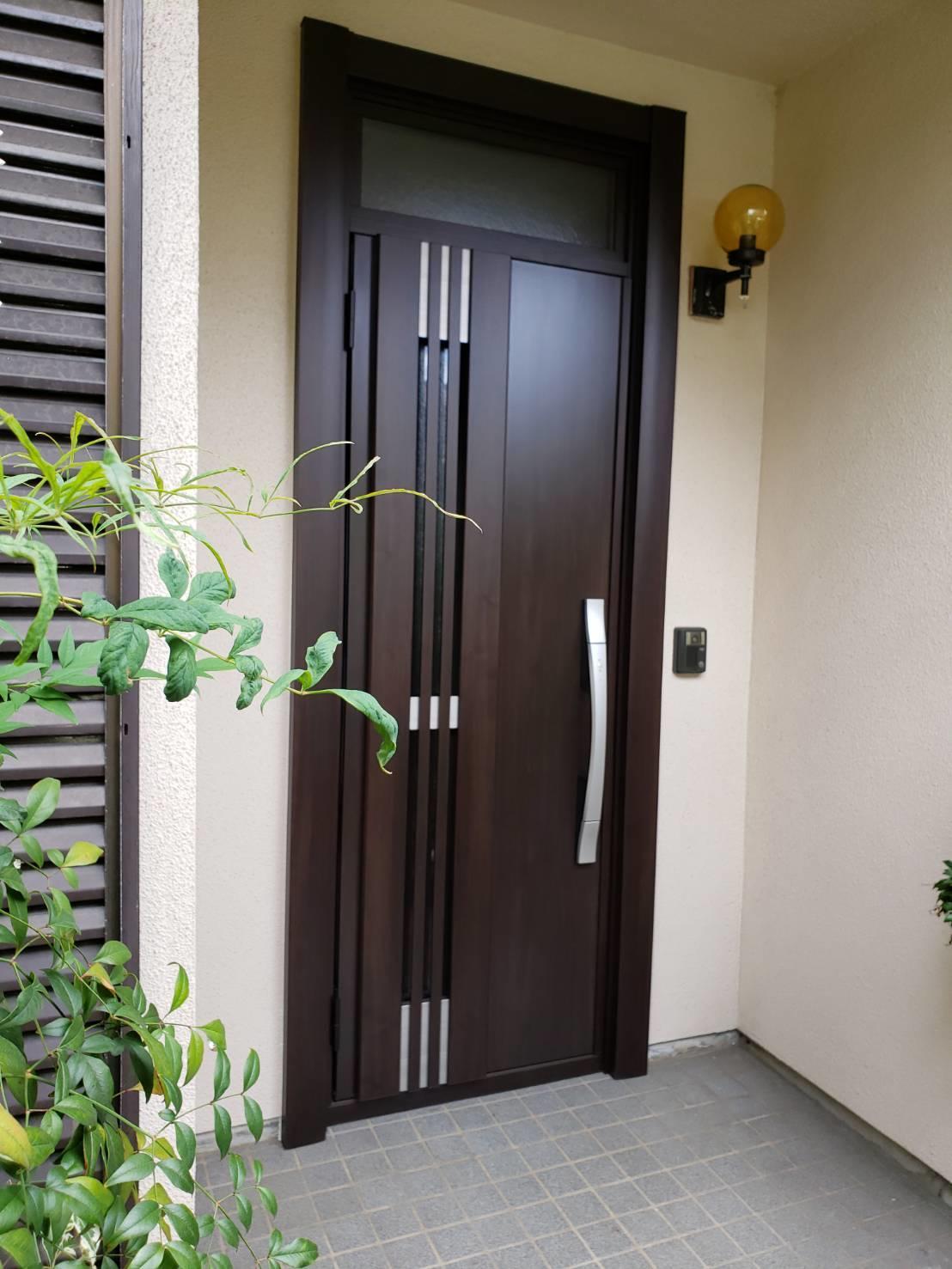 鍵が調子が悪くなったタイミングで玄関ドアリフォームをご提案しました。これからの暑い季節にスリットガラスが縦すべりして風を取り入れることが出来て魅力的なドアです。