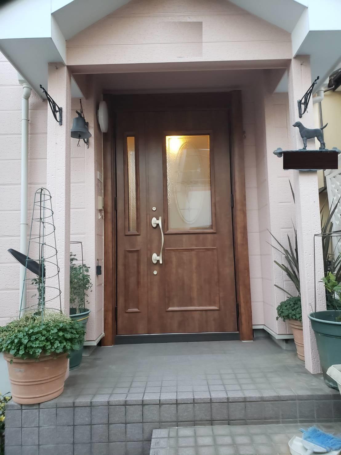 玄関のガラスが割れてしまったお客様でした、今回も光を沢山取り入れられる明るいデザインを選ばれてました。ドアカラーは木目調で今までとは全く違う雰囲気で高級感もUPしています。