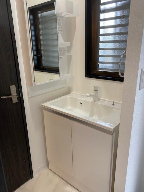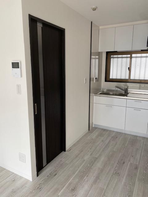賃貸マンションの1室をリニューアル工事させていただきました。 間取り2DKのお部屋ですが、玄関を開けるとダイニングが全て見渡せてしまう事、洗面化粧台が無い事、築20年ほど経過しておりますので、設備全体の経年劣化が主なお悩みでした。 白と黒を基調としたスタイリッシュなお部屋に生まれ変わりました。