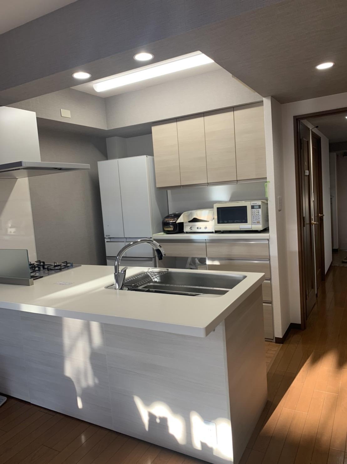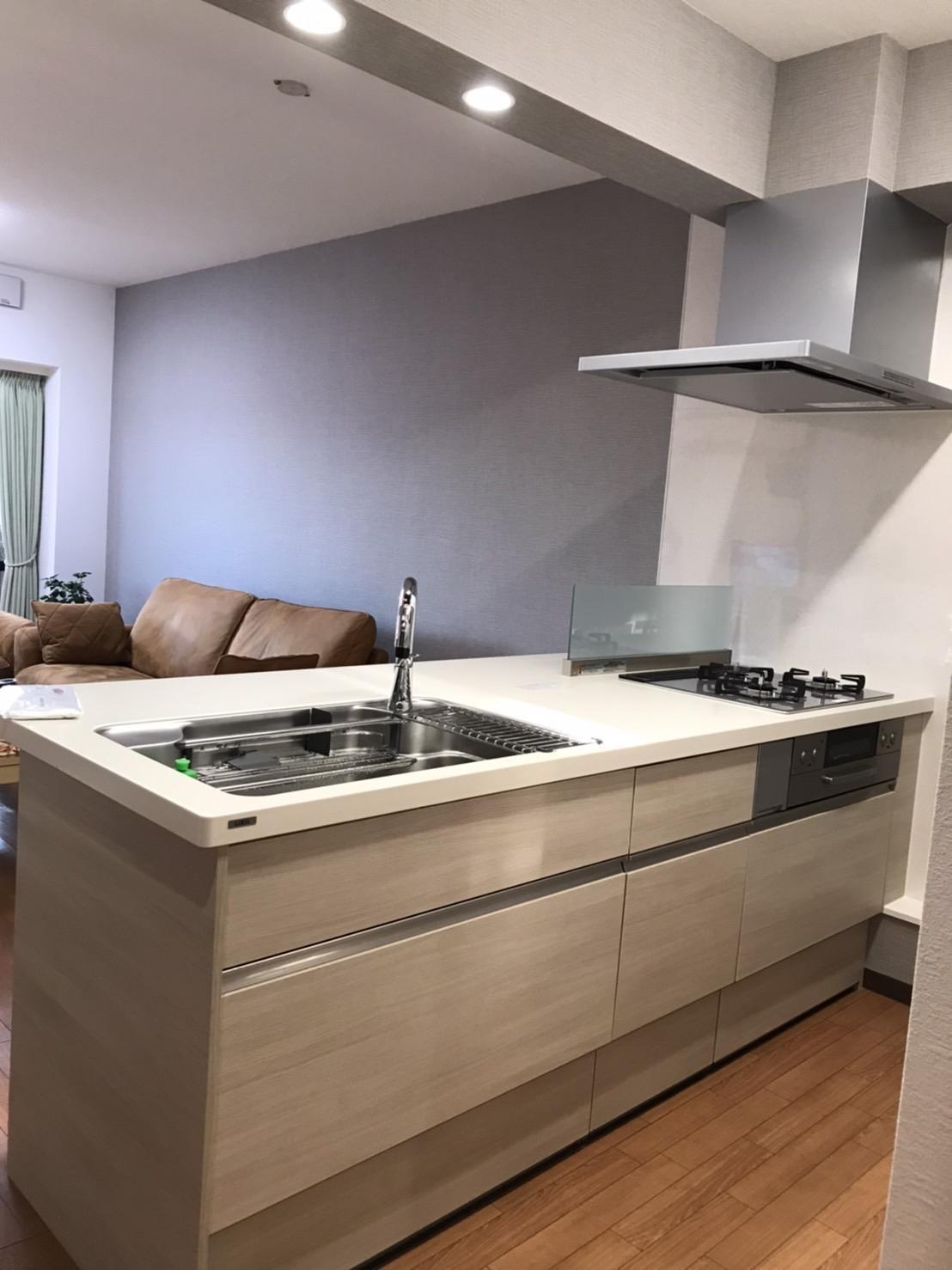 壁を壊すことで、既存より少し大きなキッチンを設置できました。