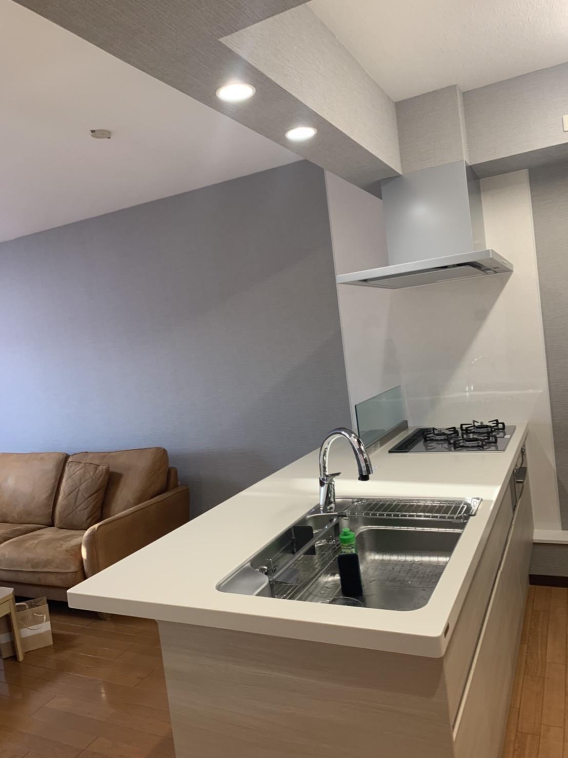 また、キッチンカウンター上部にダウンライトも設置、クロスの色わけによって