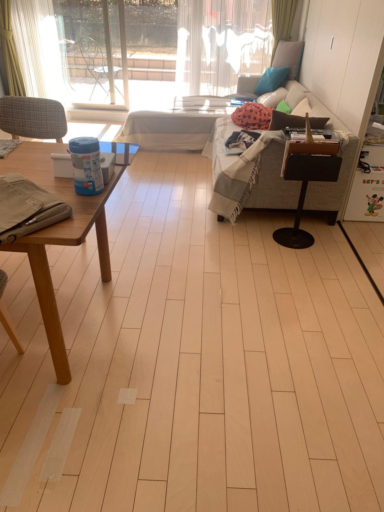 白系のフローリングが傷んできたので、床の張替と壁紙の張替をして、
