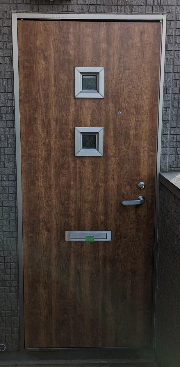 経年劣化による玄関ドアの老朽化に伴い今回ご相談を頂きました。 借主様が快適に過ごせるようにと、大家様のご意向で断熱性も高い防火戸をご採用頂きました。
