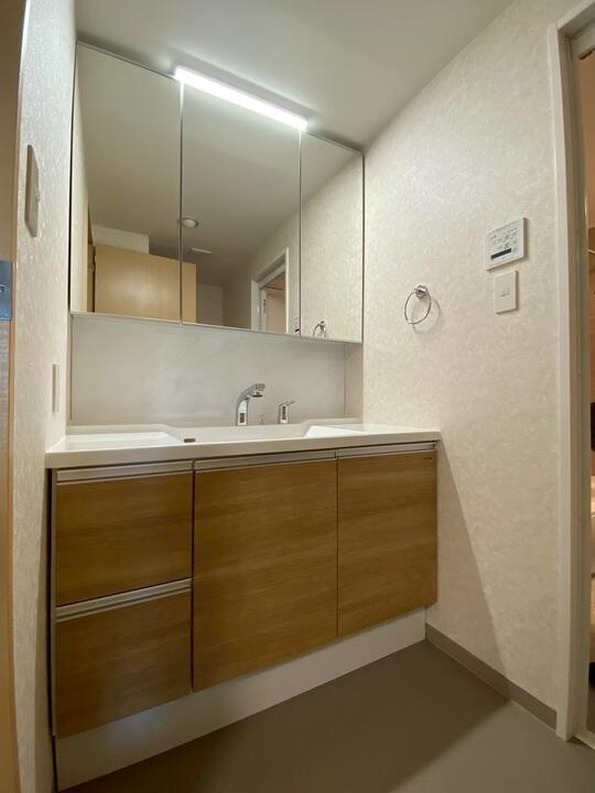 浴室・洗面も一緒にリフォームをしたのですが、そちらの内装についてもご相談を頂き、一緒にご選定をさせて頂きました。洗面室の内装は浴室のパネルの雰囲気ともとても合っていて、ご家族皆様が喜んでくださいました。