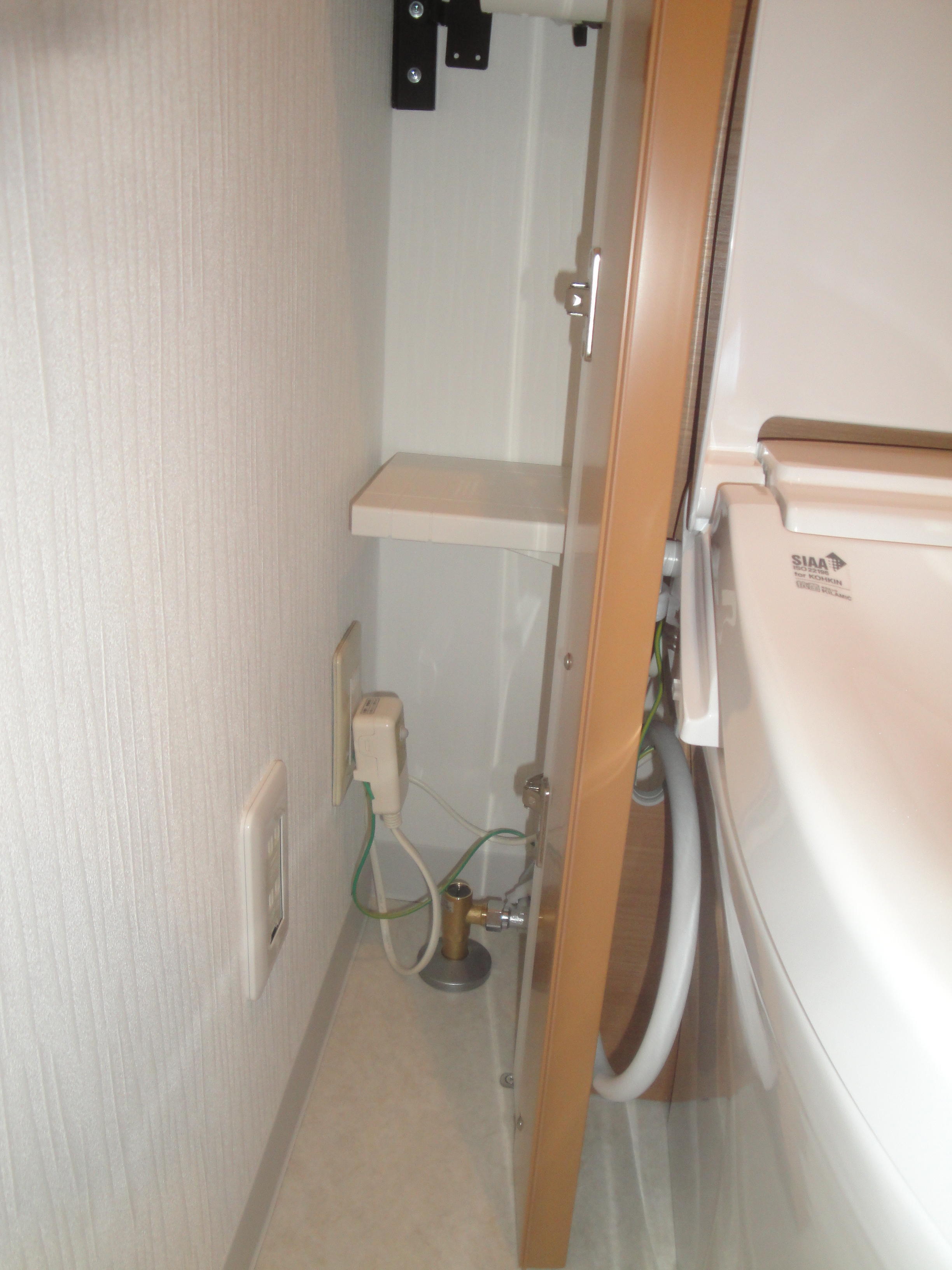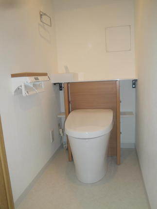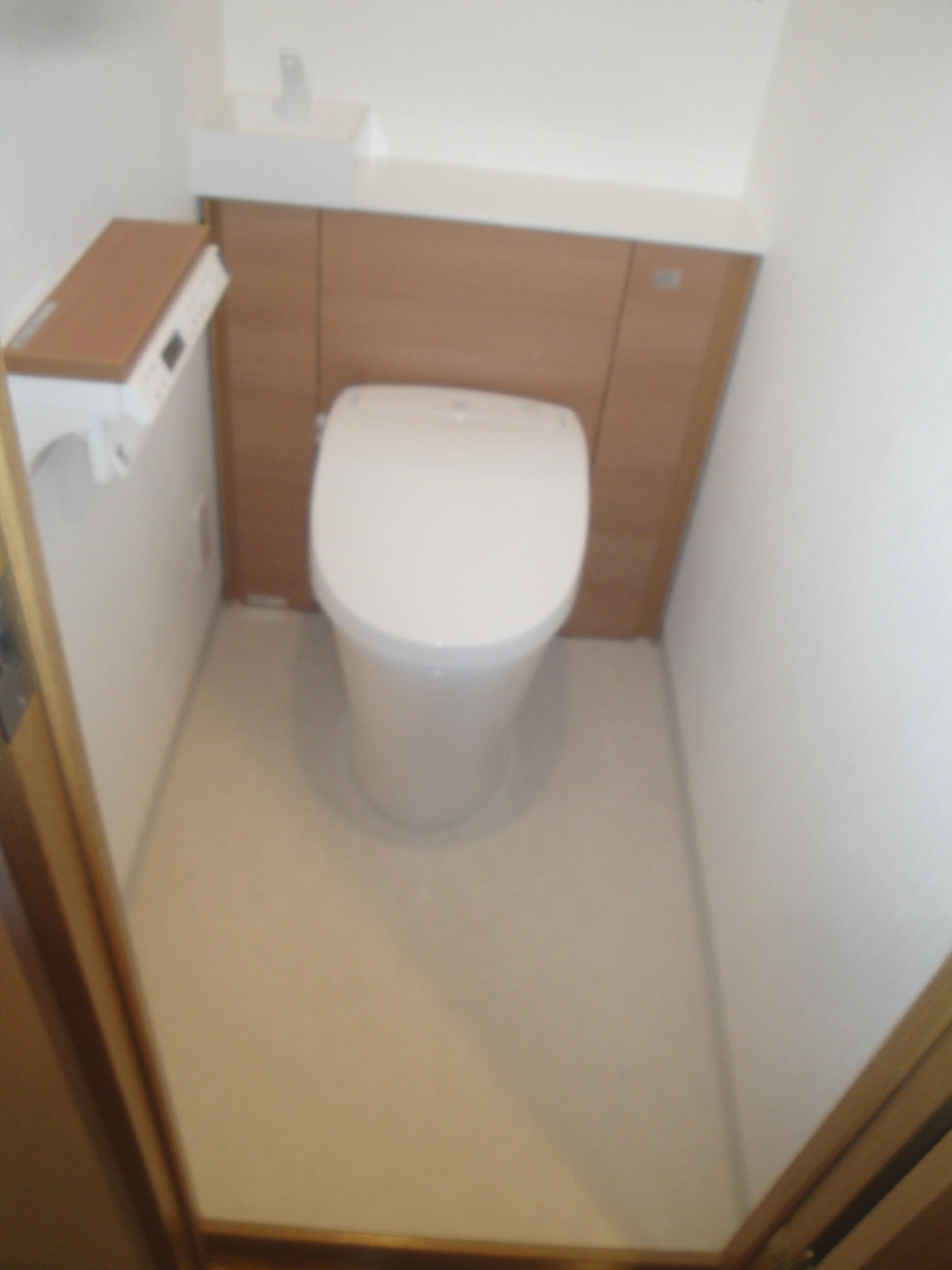 トイレ室 収納キャビネット(タンク内)タイプ取替え、内装(壁紙、床材張替)の一緒にリフォーム