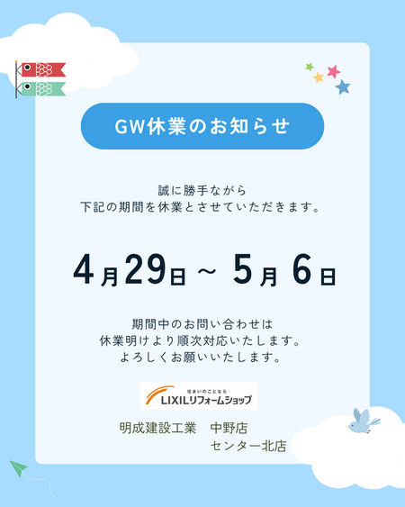 | 店舗名 | LIXILリフォームショップ 明成建設工業 センター北店 |