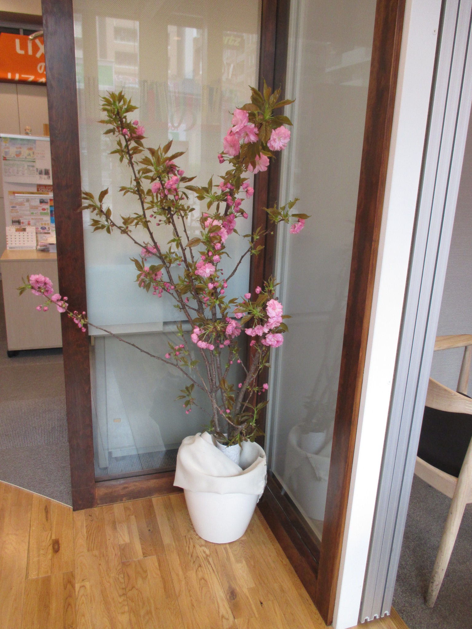 リフォーム相談、セミナー参加プレゼントで用意してる八重ざくらも綺麗に咲いてます。