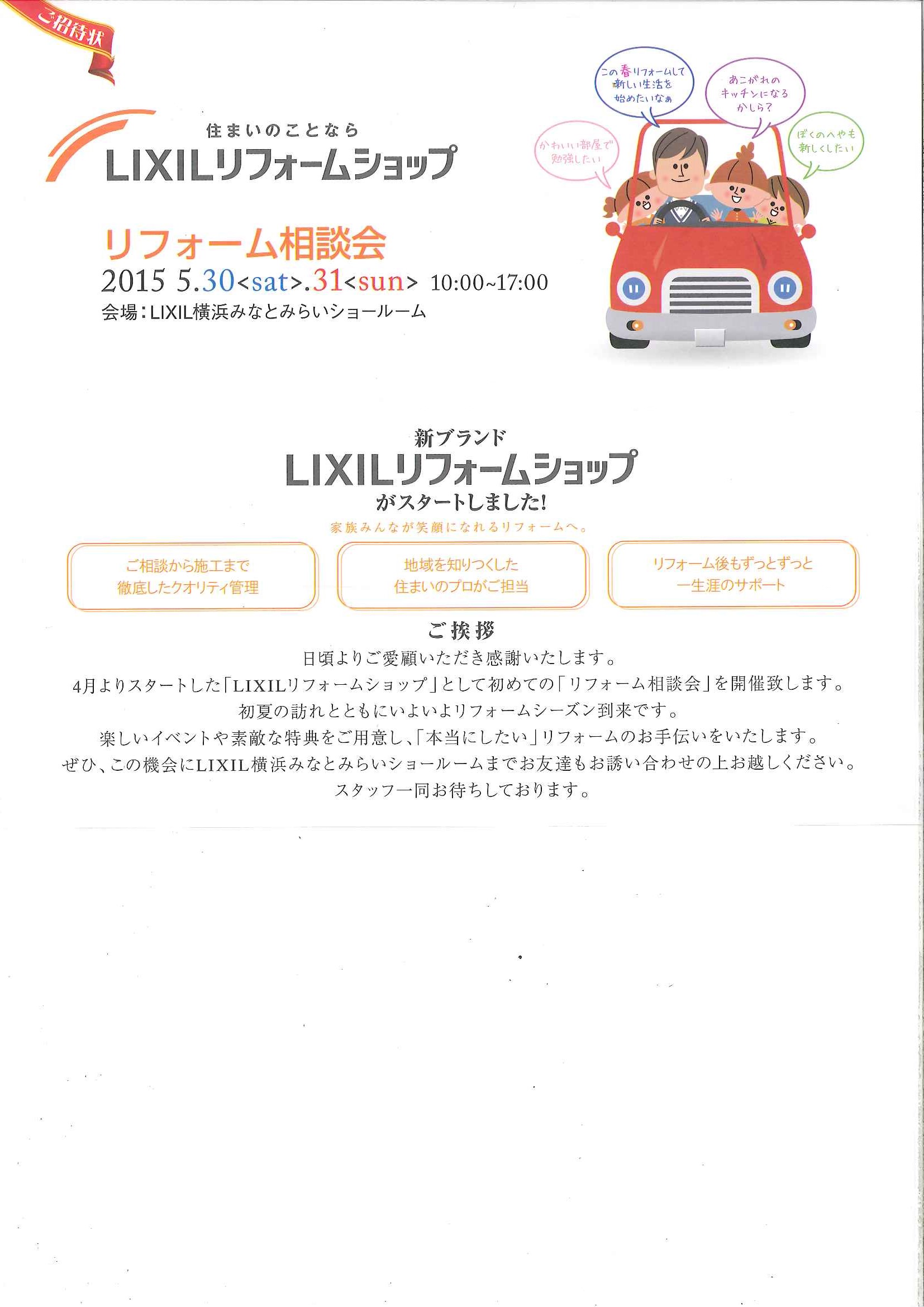 5月30日、31日に横浜みなとみらいショールームでLIXILリフォームショップの