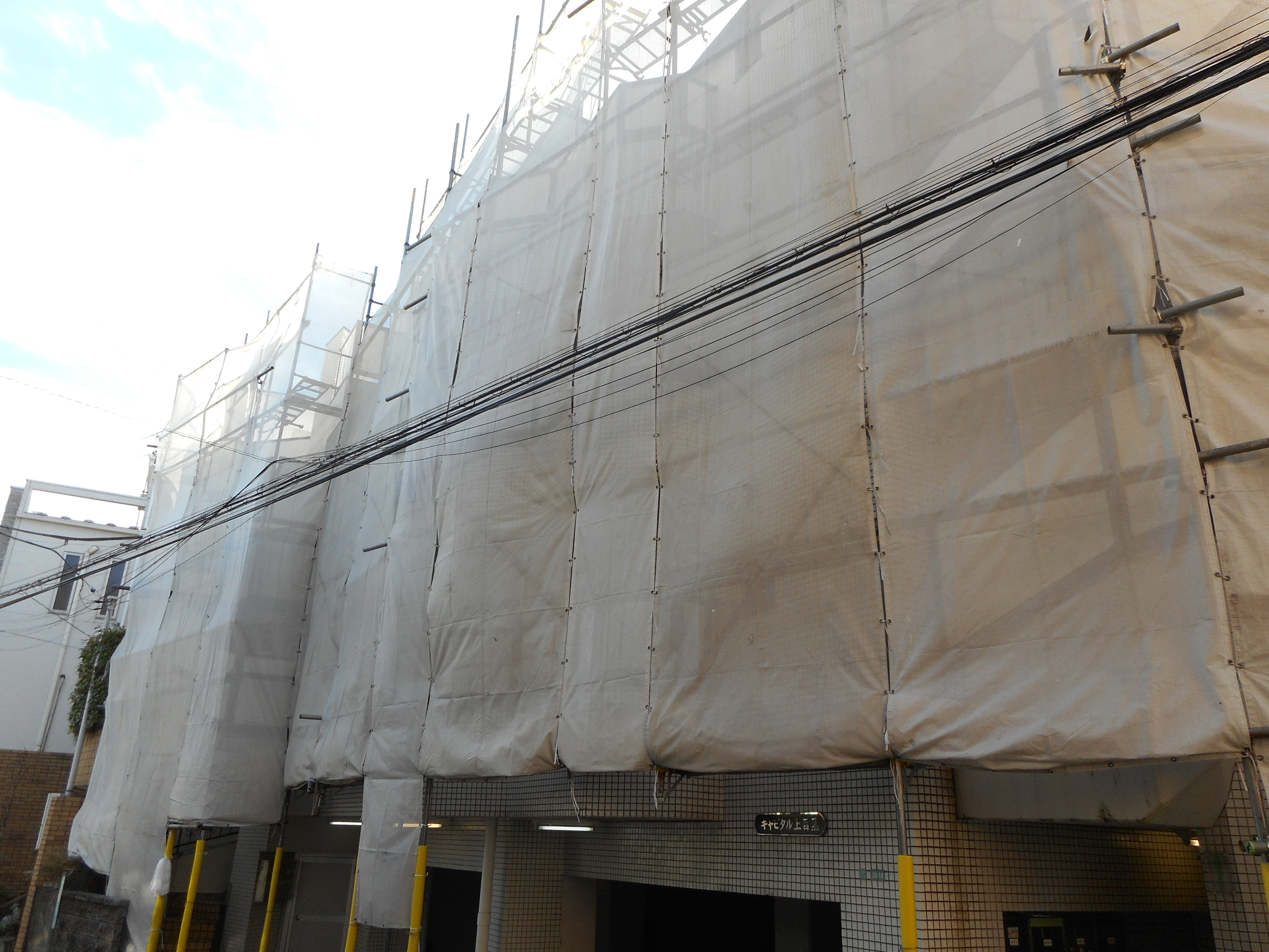 シートで覆ってしまいました。居住者様には大変ご迷惑おかけいたしました。