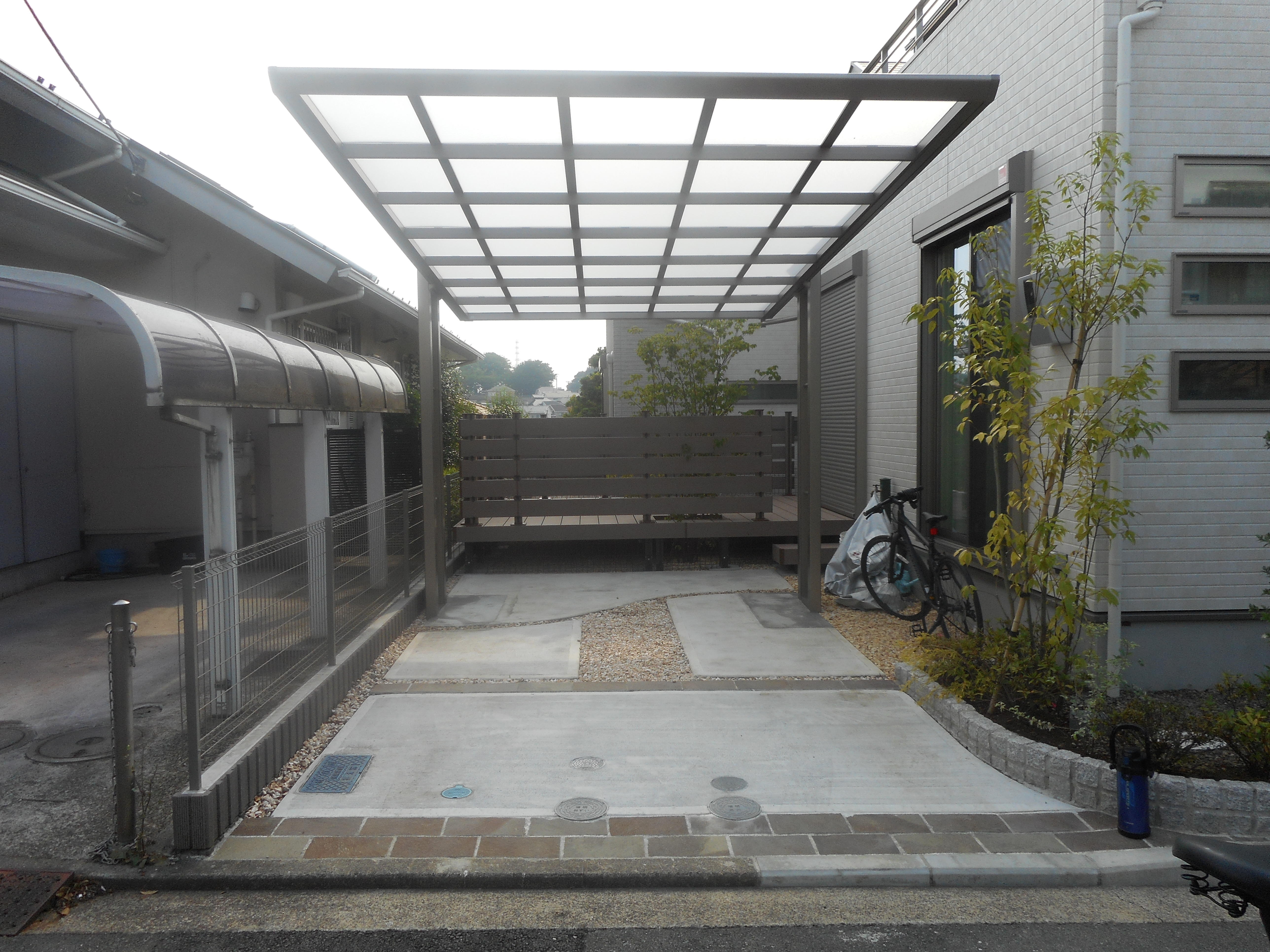 既存の何もないところに LIXILのカーポート アーキフラン(商品名) を合成しました。