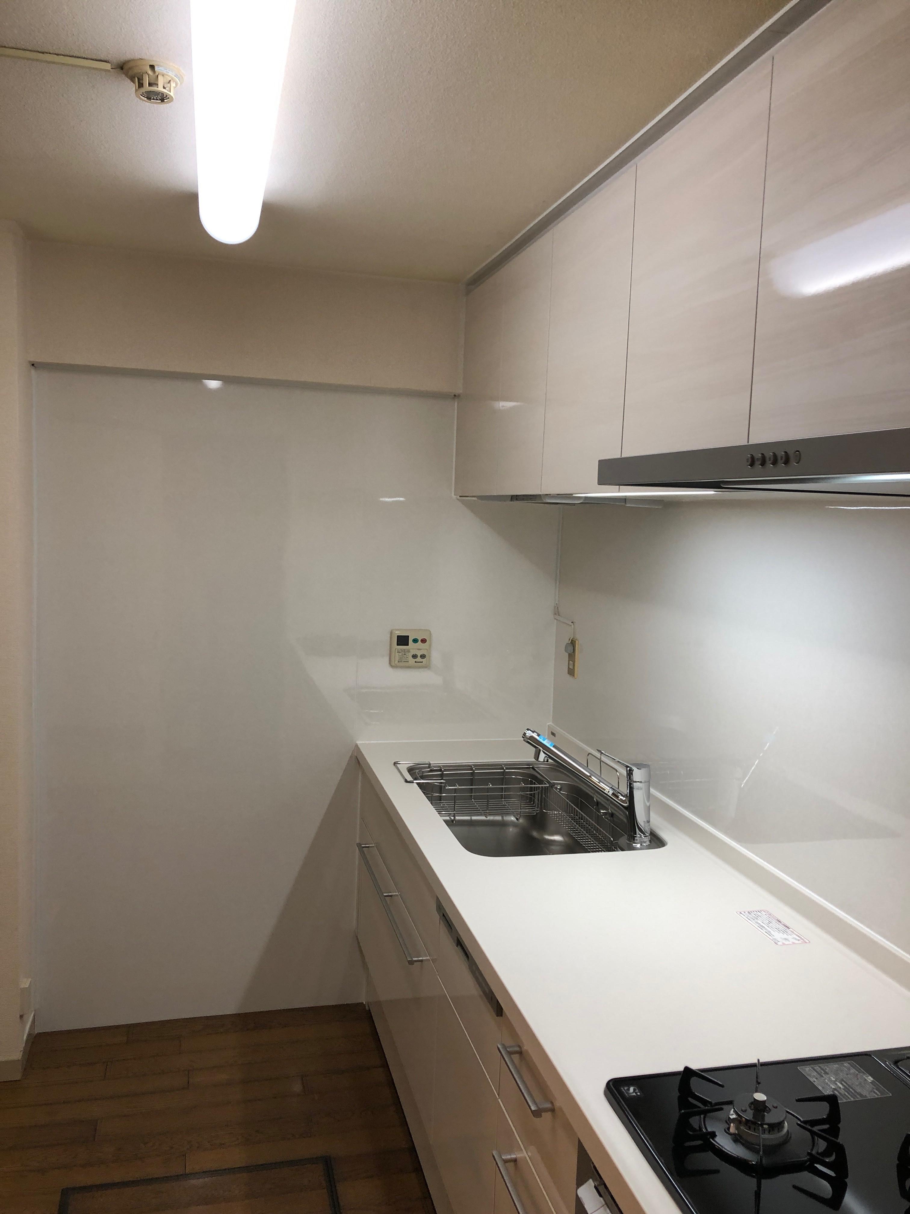 1.お手入れのしやすさ:キッチン本体だけでなく 壁廻りもパネル仕様で汚れが落としやすくなっています。