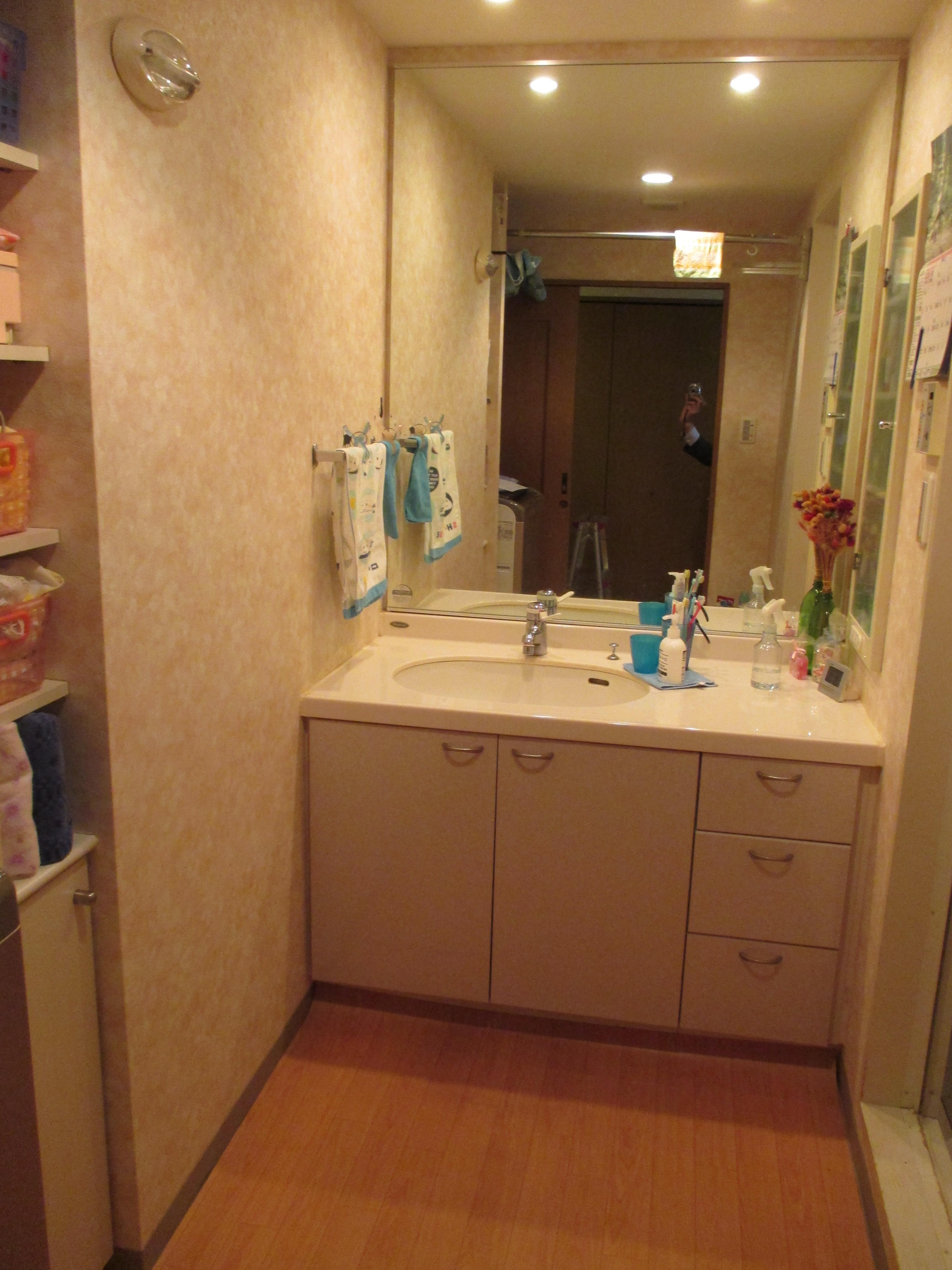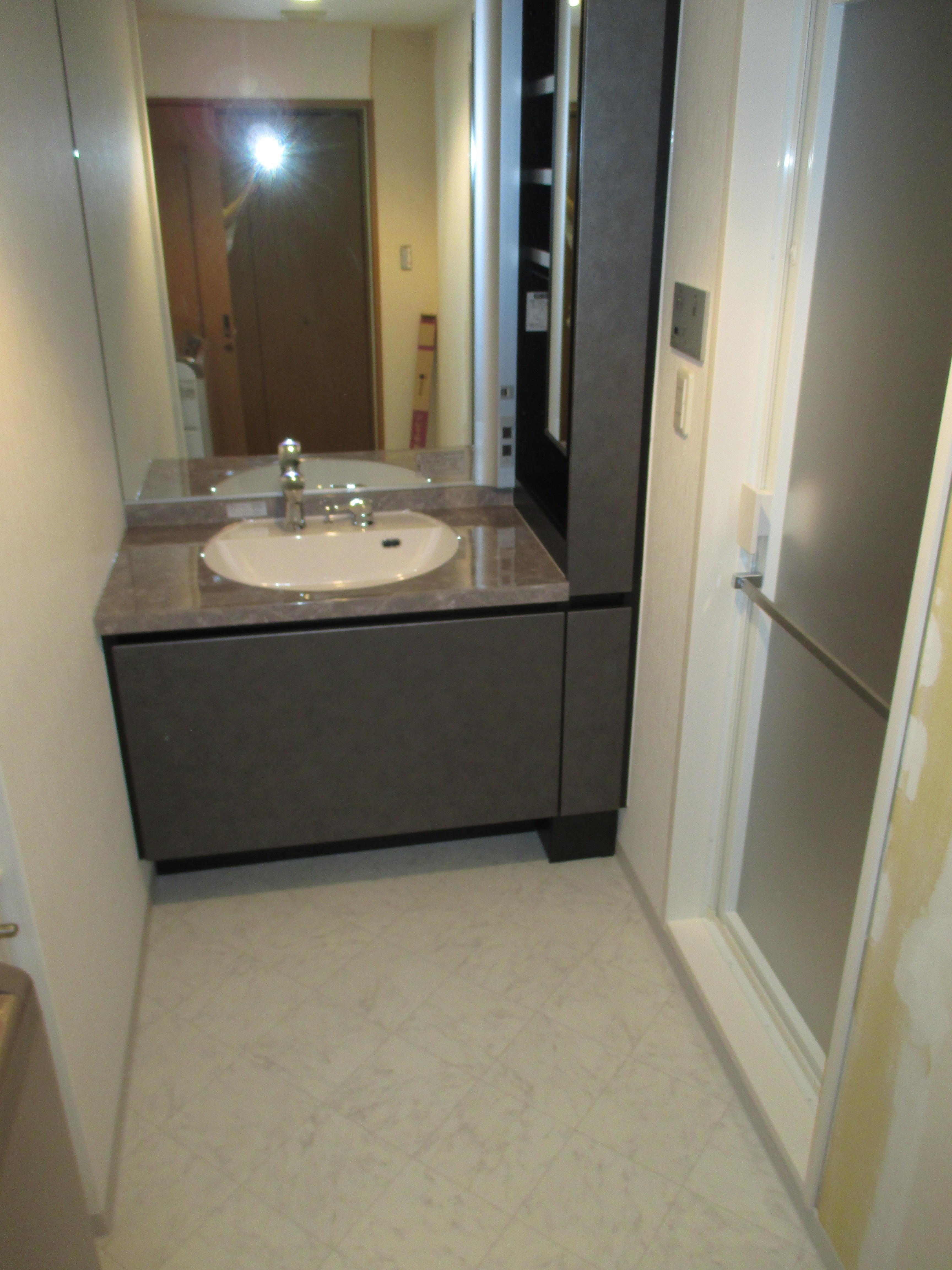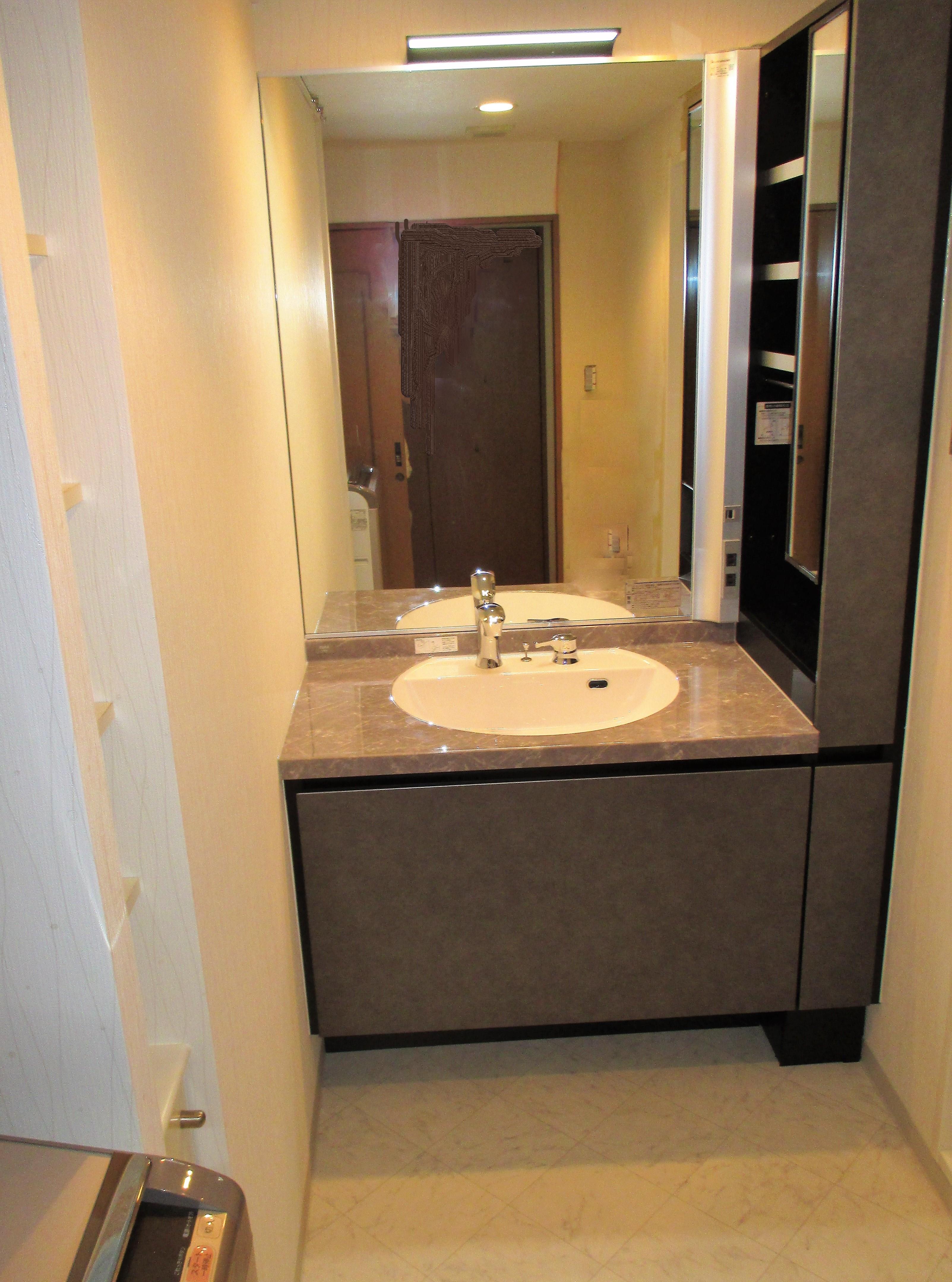 高級ホテルの様な落ち着きのあるおしゃれな洗面化粧台(空間)へと変身しました。