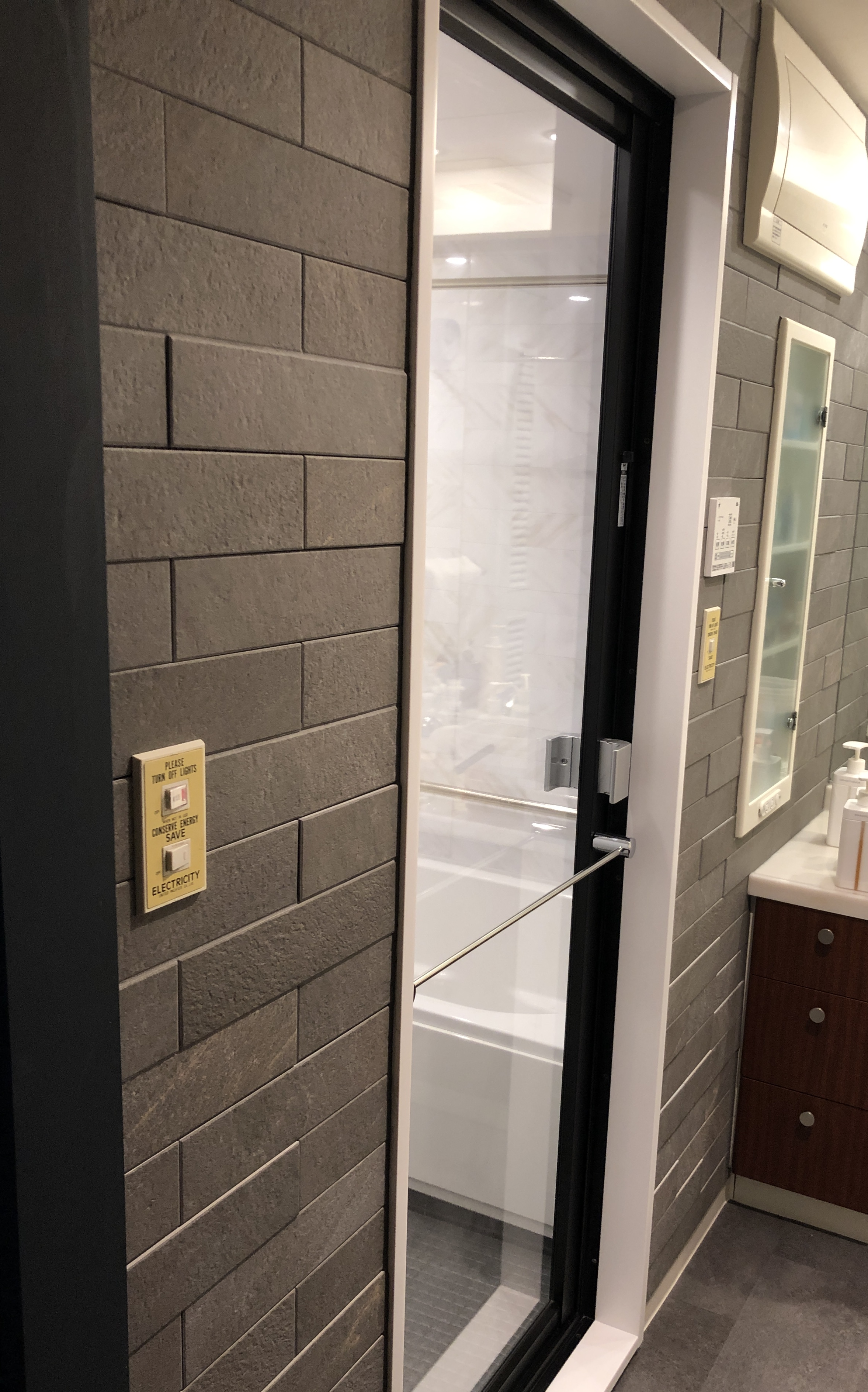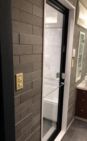 さらにもともとアクセントクロスにしていた浴室入り口面は浴室の施工の際にクロスを痛めてしまうためエコカラットをご提案させていただきました