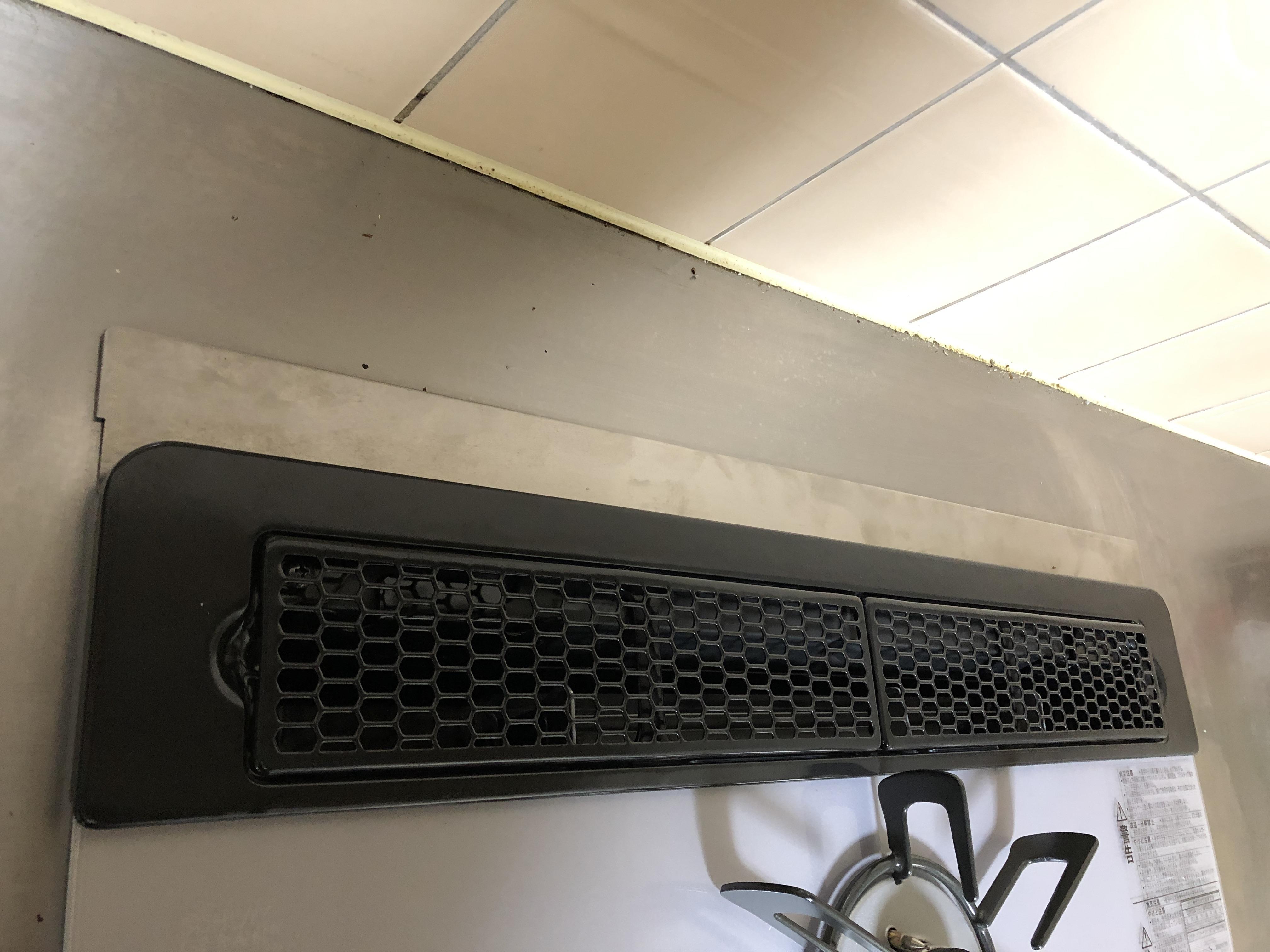 カウンターの開口の大きさが合わないため、リンナイの飾り板という付帯部材で塞ぐ必要がありますが