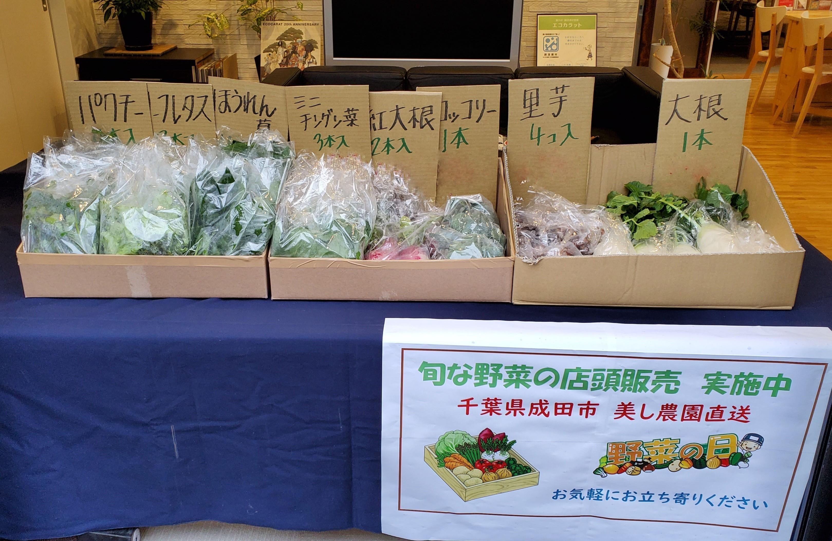 生産元の千葉県成田市の「美し農園」さんから届いた新鮮で採り立ての野菜(*^^*)