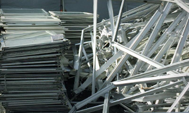 材料は、東日本大震災の被災地の仮設住宅で使用されていた窓などのアルミ建築廃材を利用していて、