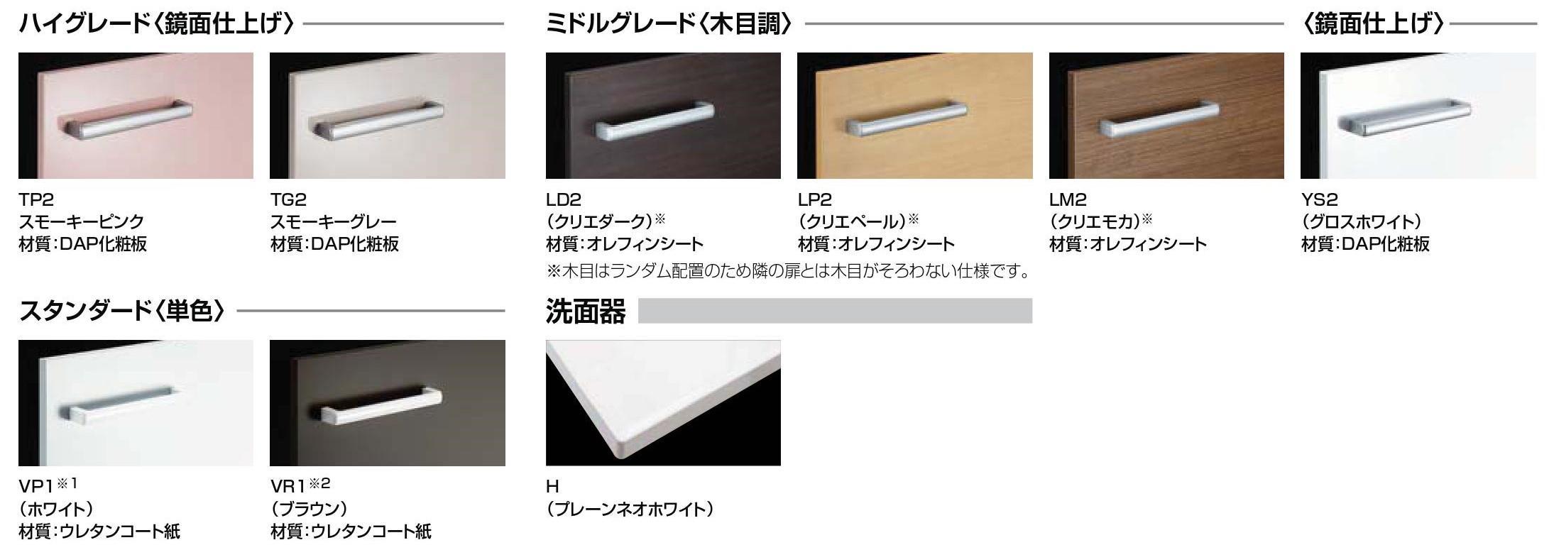 ●ピアラ ⇒ 底が広くて大容量の洗面ボウル。カラーバリエーションが豊富な洗面化粧台