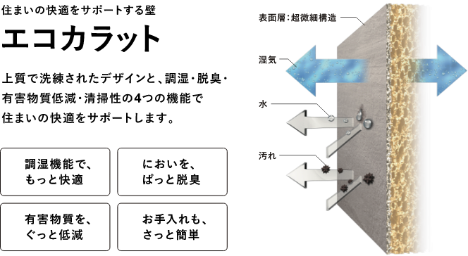 調湿・脱臭・有害物質低減・清掃性の4つの機能で1年中住まいの快適をサポート!!