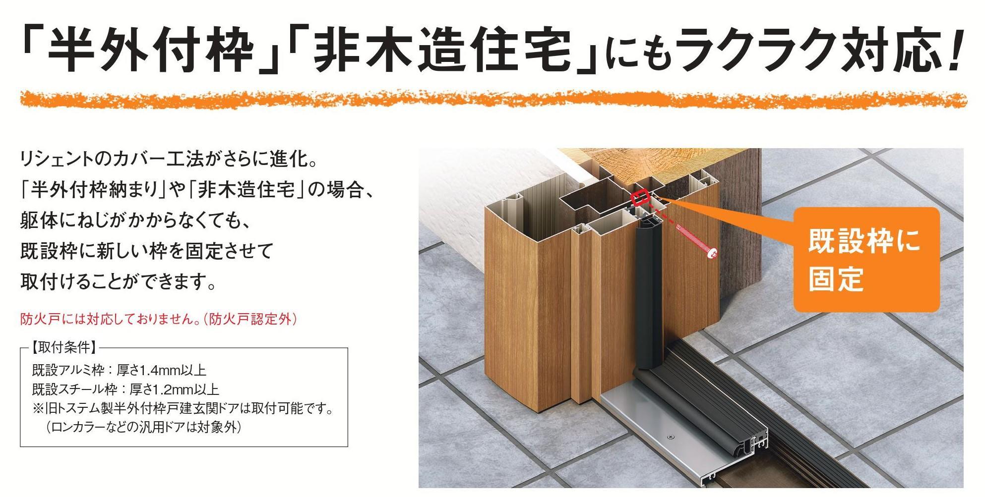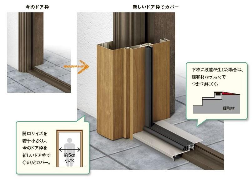 今ある枠の上から新しい枠を取り付けるカバー工法だから、壁や床を傷付ける心配がありません。