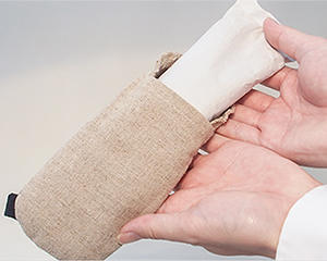 エコカラットを小さく砕き通気性の良い袋に詰めた手のひらサイズのニオイ低減グッズで、