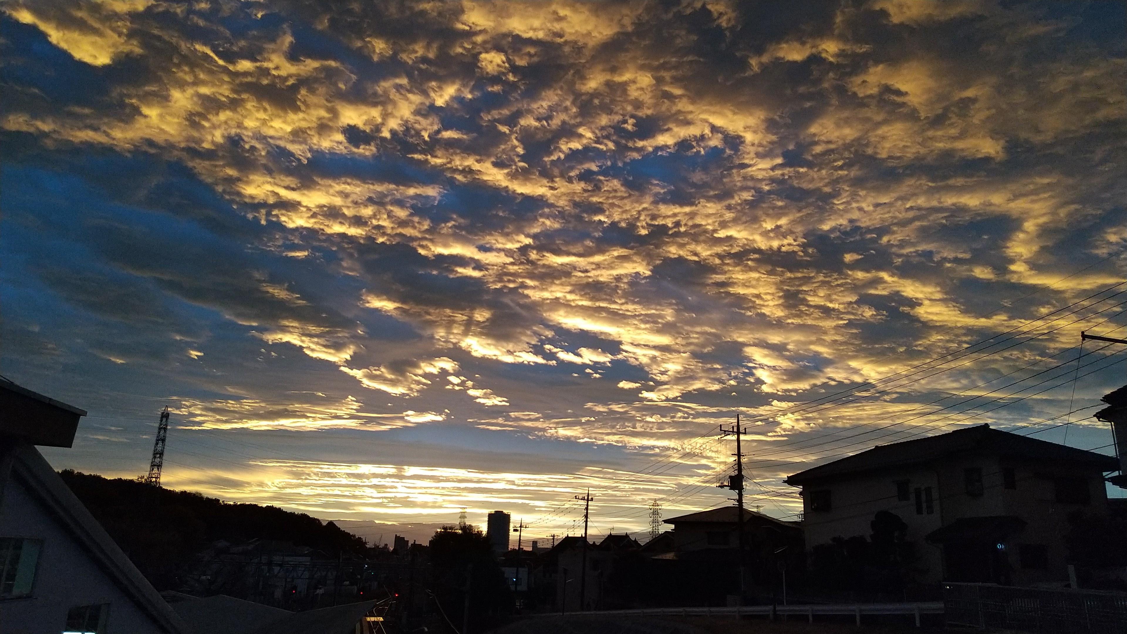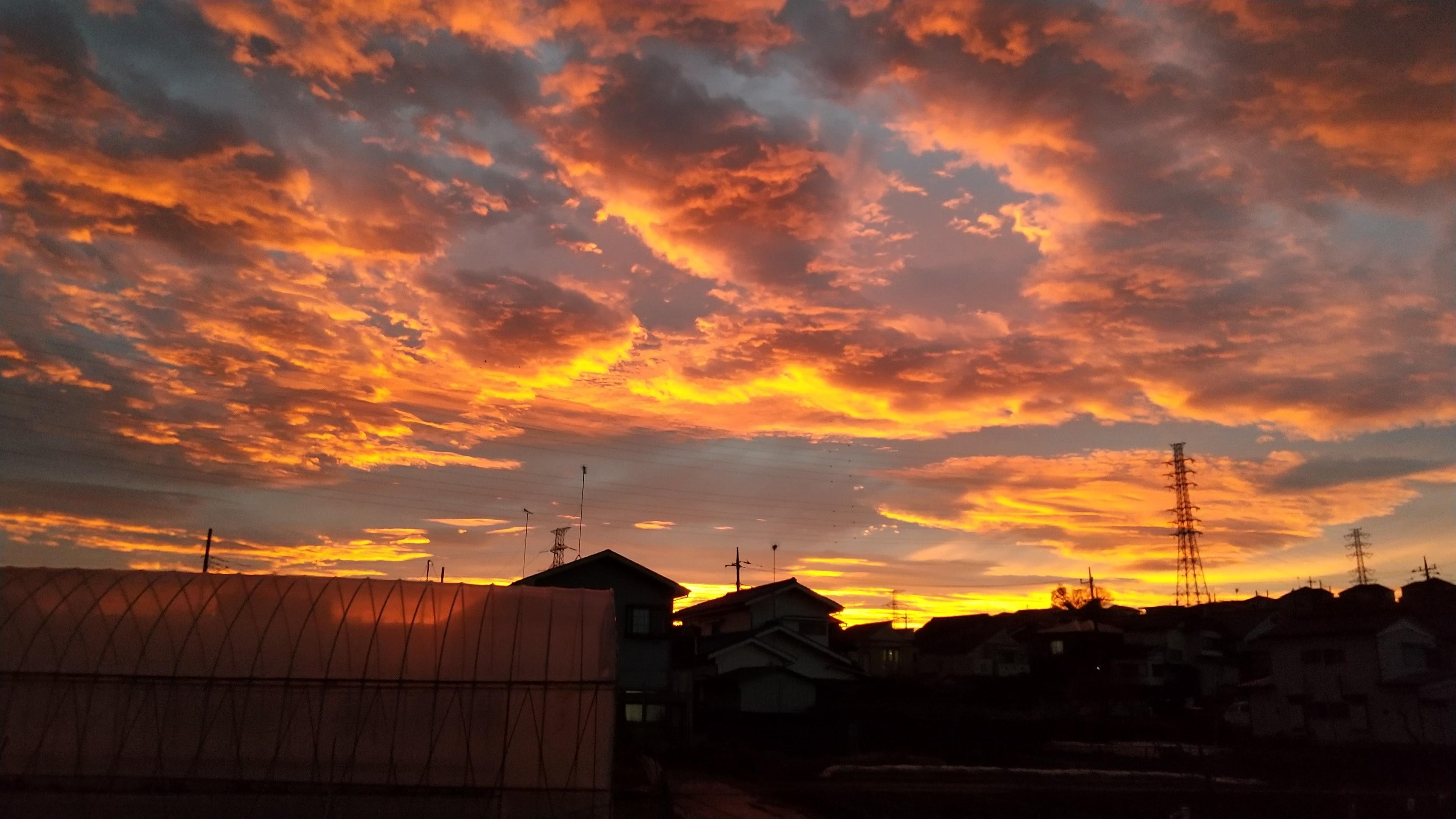 少し前になりますが、出勤の時に朝焼けの空がものすごくきれいで思わず写真を撮りました。