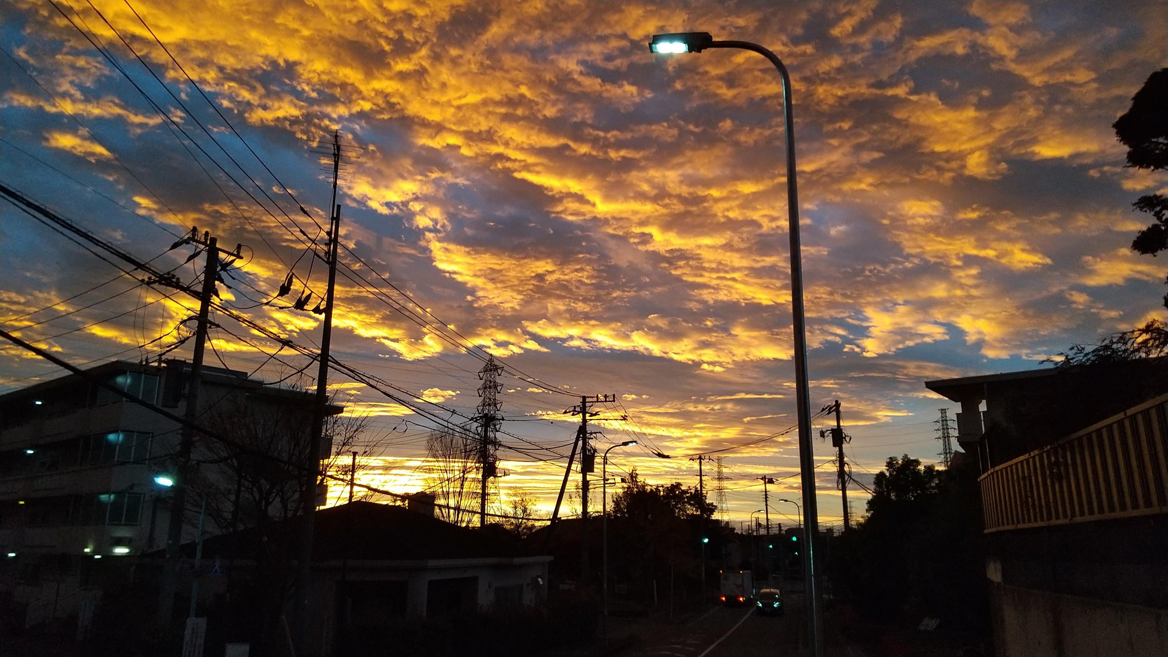 自宅から駅まで7、8分なのですが、この空の色も1分ほどでどんどん色が変わっていきます。