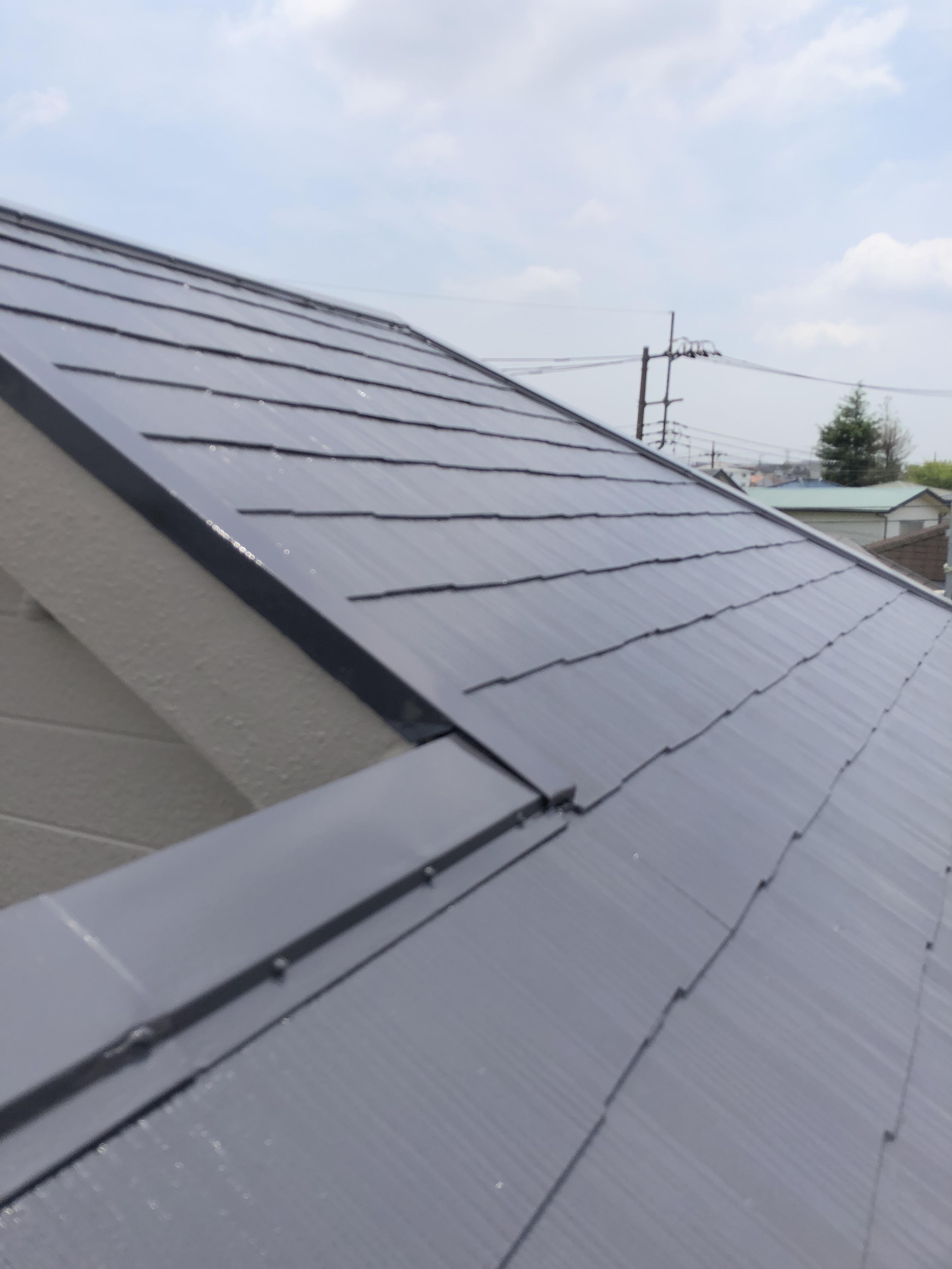 室内への熱を軽減するためにフッ素系の遮熱塗料を使用しました(^^♪