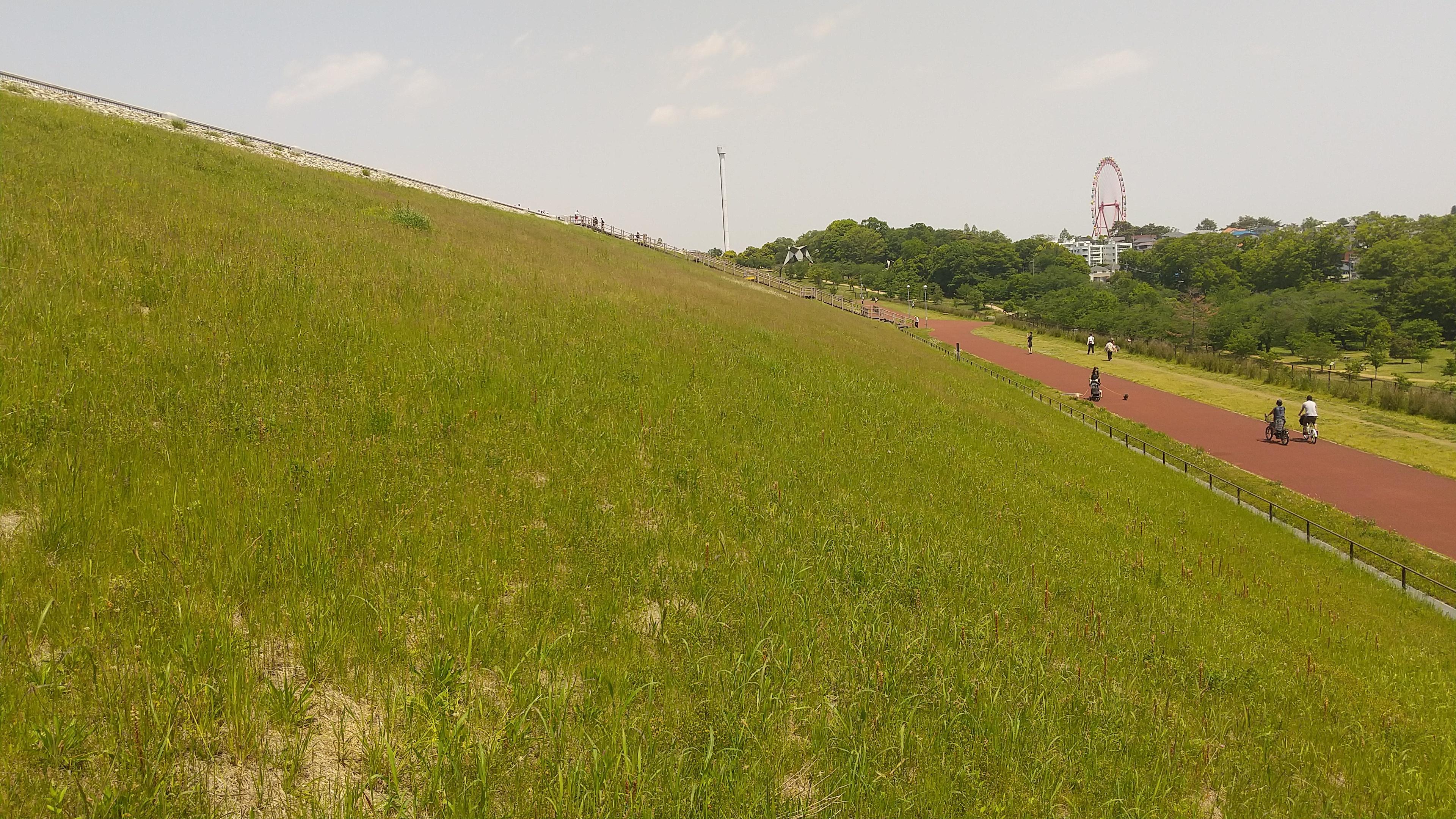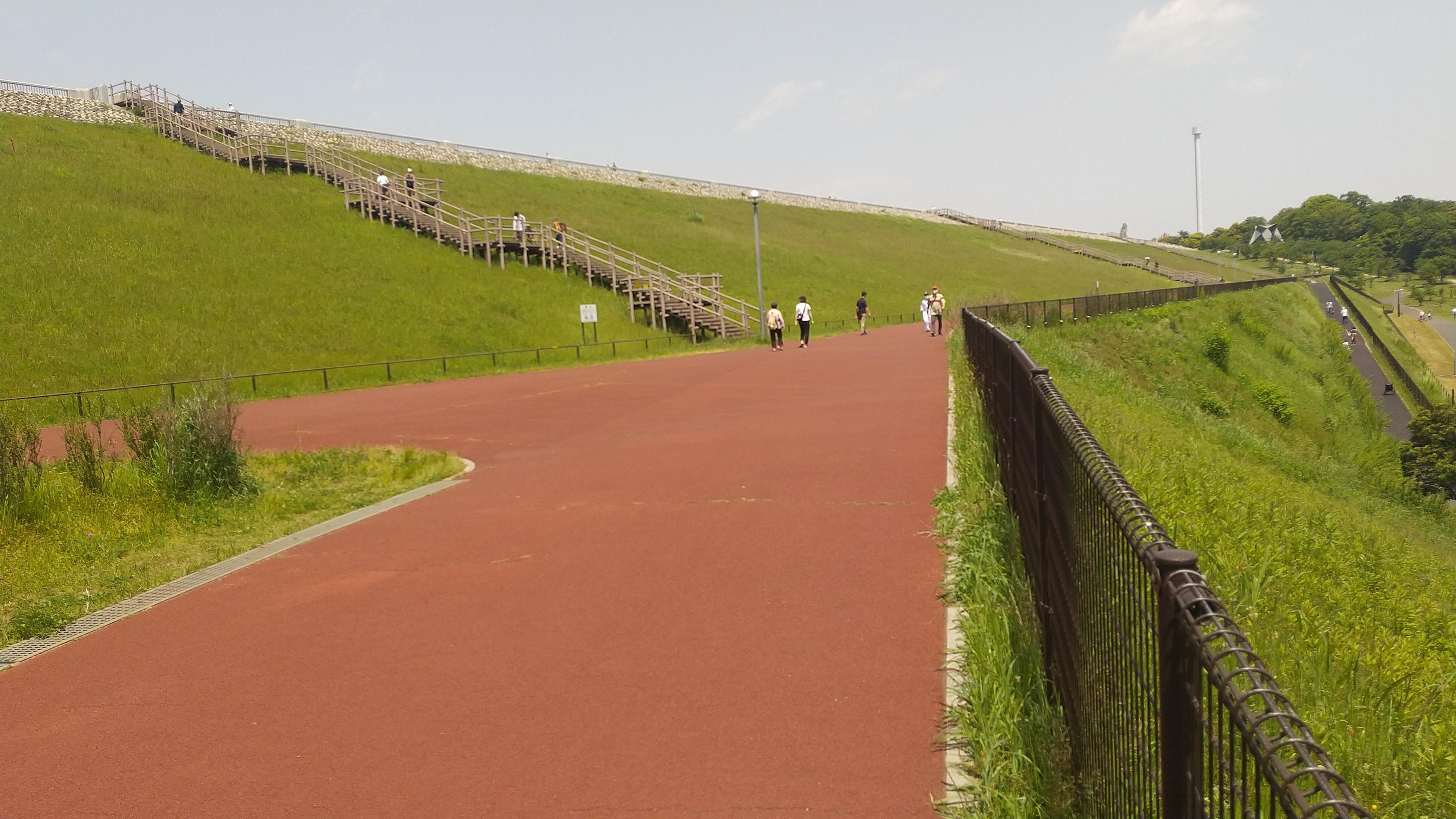 堤防の上は散歩やランニングしたり、サイクリングロードにもなっています。