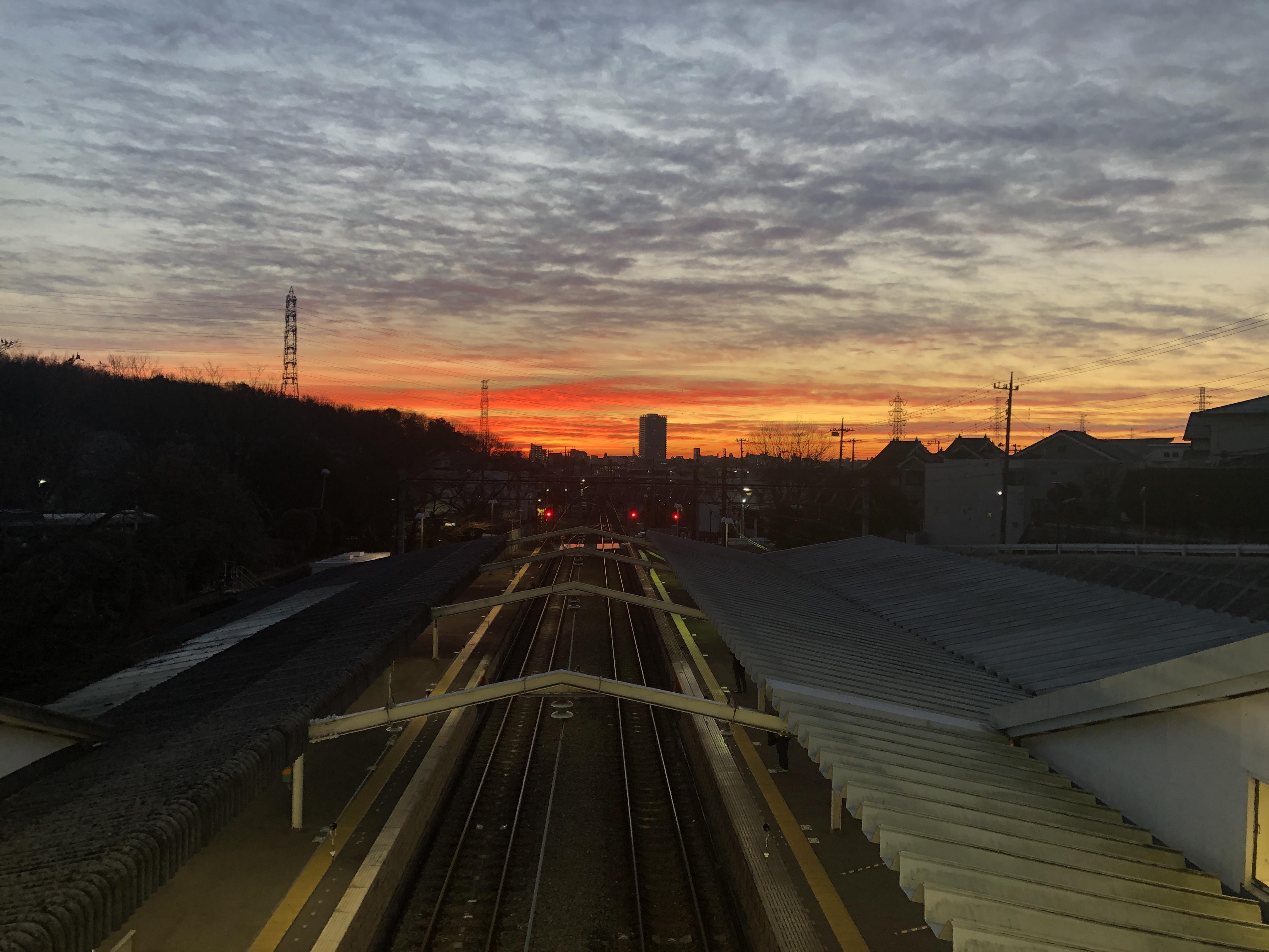 出勤時に駅の改札を抜けた窓から東の空(都心方向)が望めます。