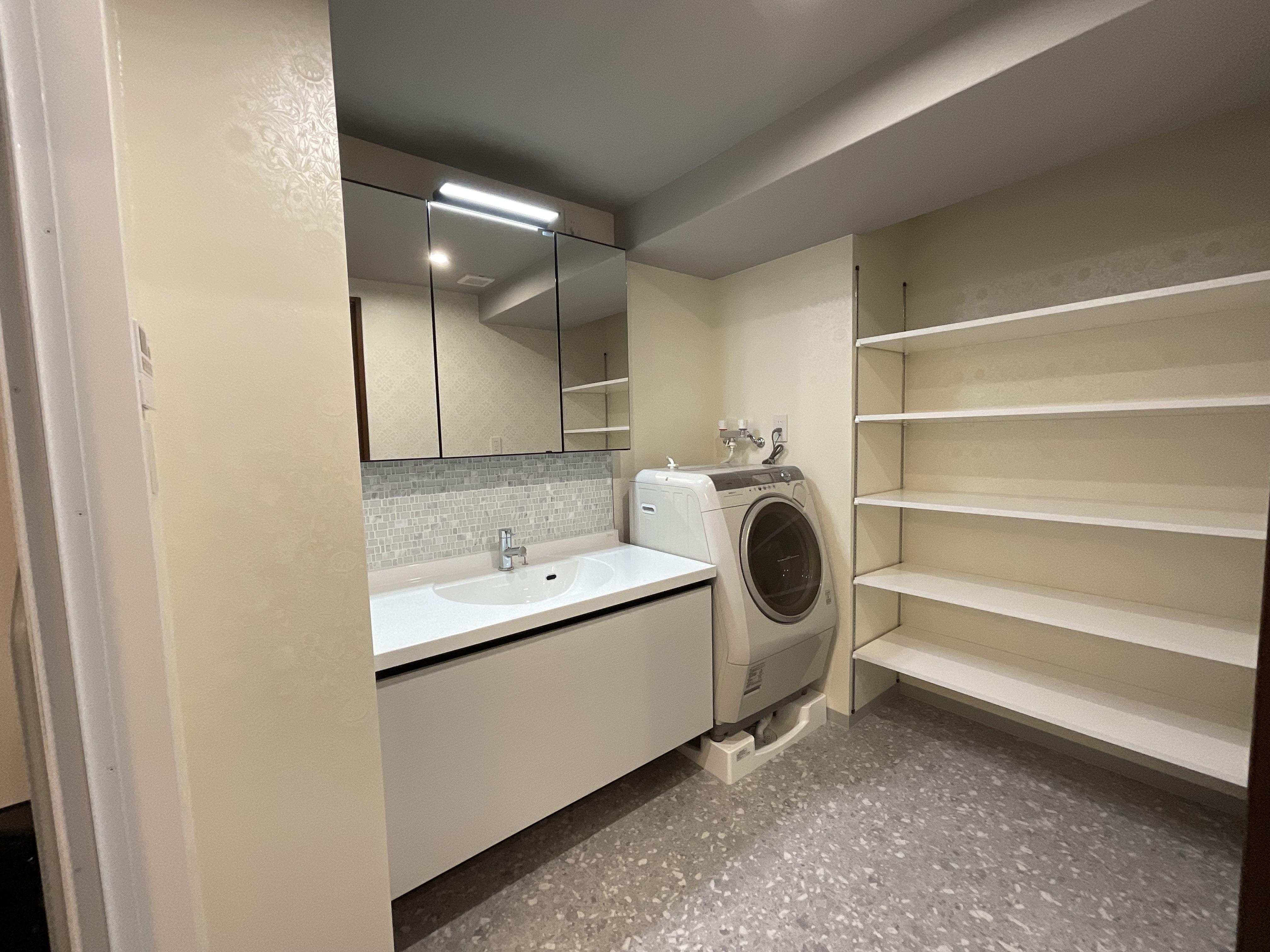 洗濯機を移動させ、デッドスペースを収納にするために棚板を作ったのですが