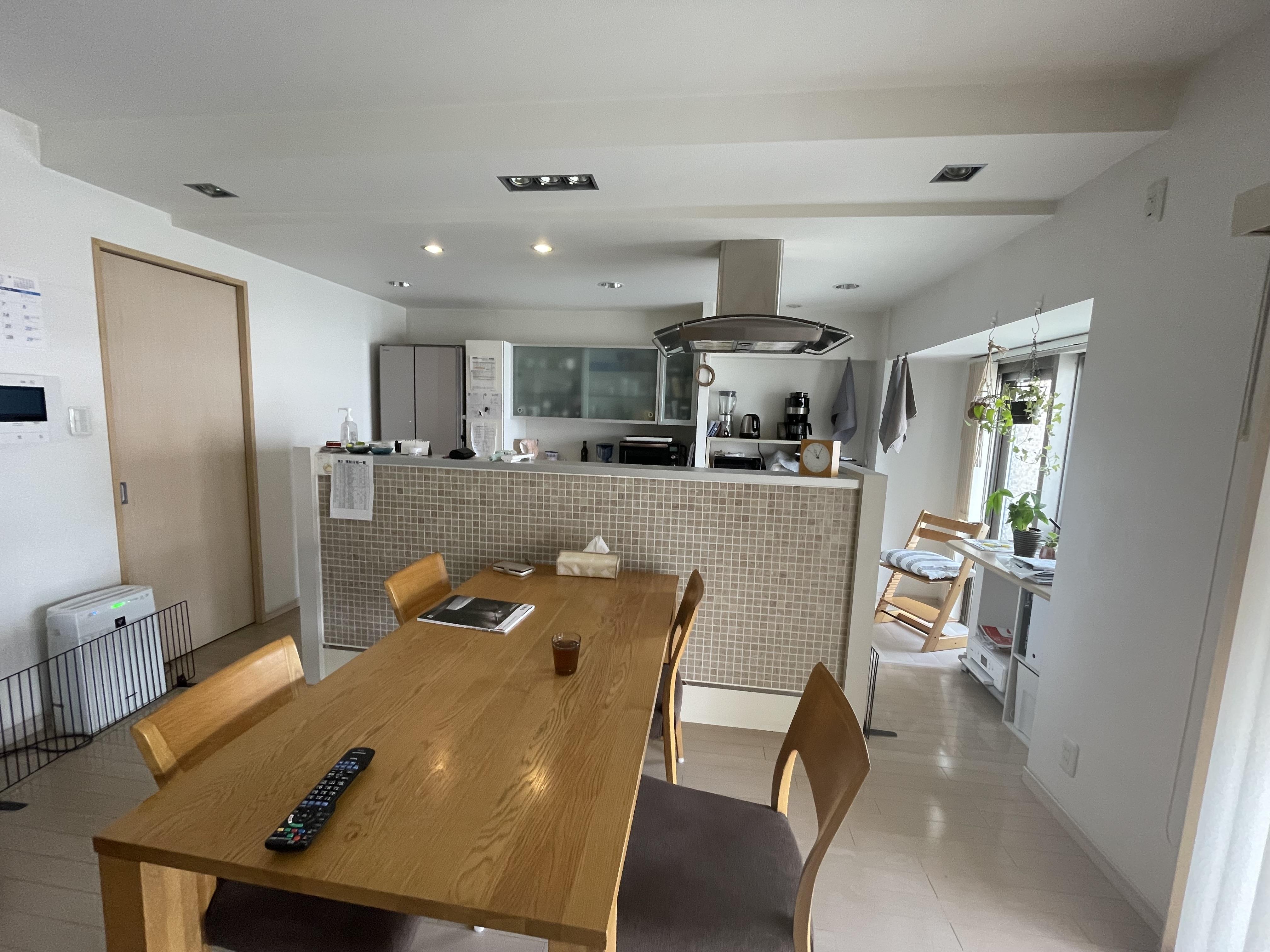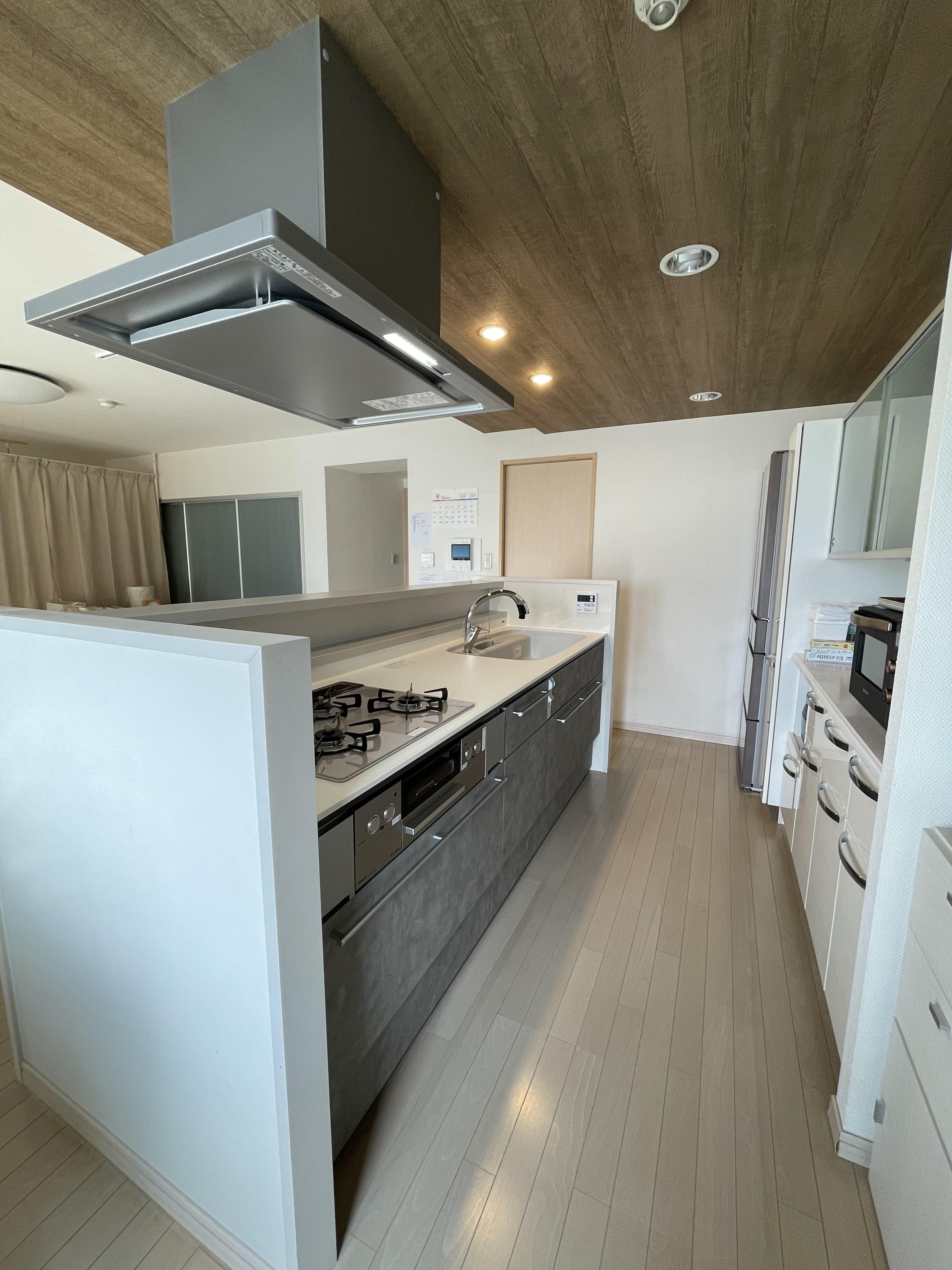 マンション新築当初からのオープンキッチンで、素敵なタイル仕上の腰壁があるキッチンです。