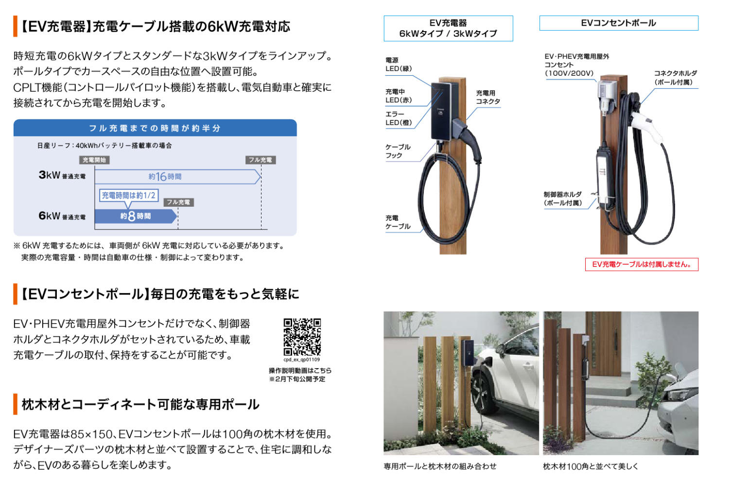 ポールに機能を集約した「EVコンセントポール」の2機種をラインアップ。