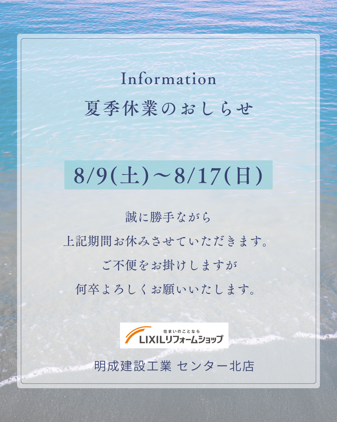 一覧へ戻るセンター北店では以下の期間を夏季休業といたしますので