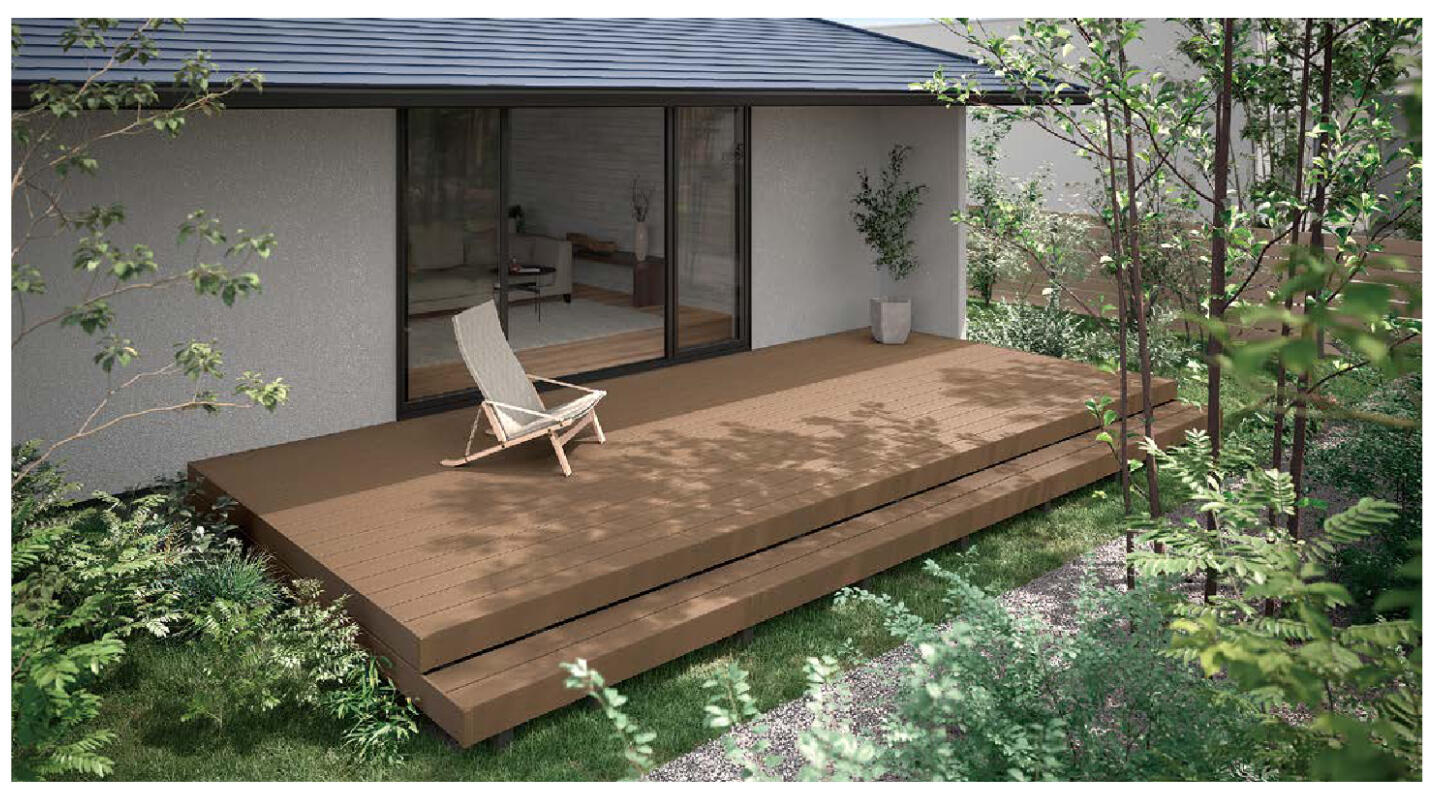 まっすぐ美しい木目による上質な質感で穏やかなデッキ空間を実現。