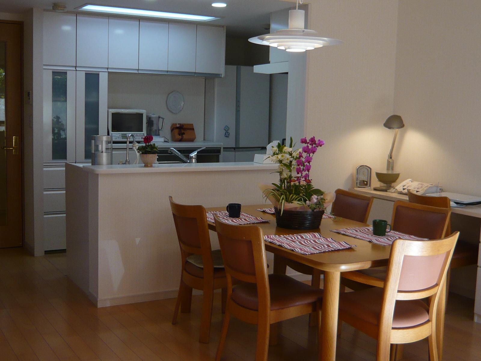 今回のポイントは、キッチンの壁の撤去と和室の有効活用。お庭からの来客に対応できるよう、和室は第二の玄関とも呼べるスペースに仕上げました。さらにダイニングのプライバシーもかねて、畳コーナーをご提案した結果、第二のリビングとしても活用できるようになりました。この空間を気に入って頂け「提案してもらってよかった」とのお言葉を頂きました。ありがとうございます。
