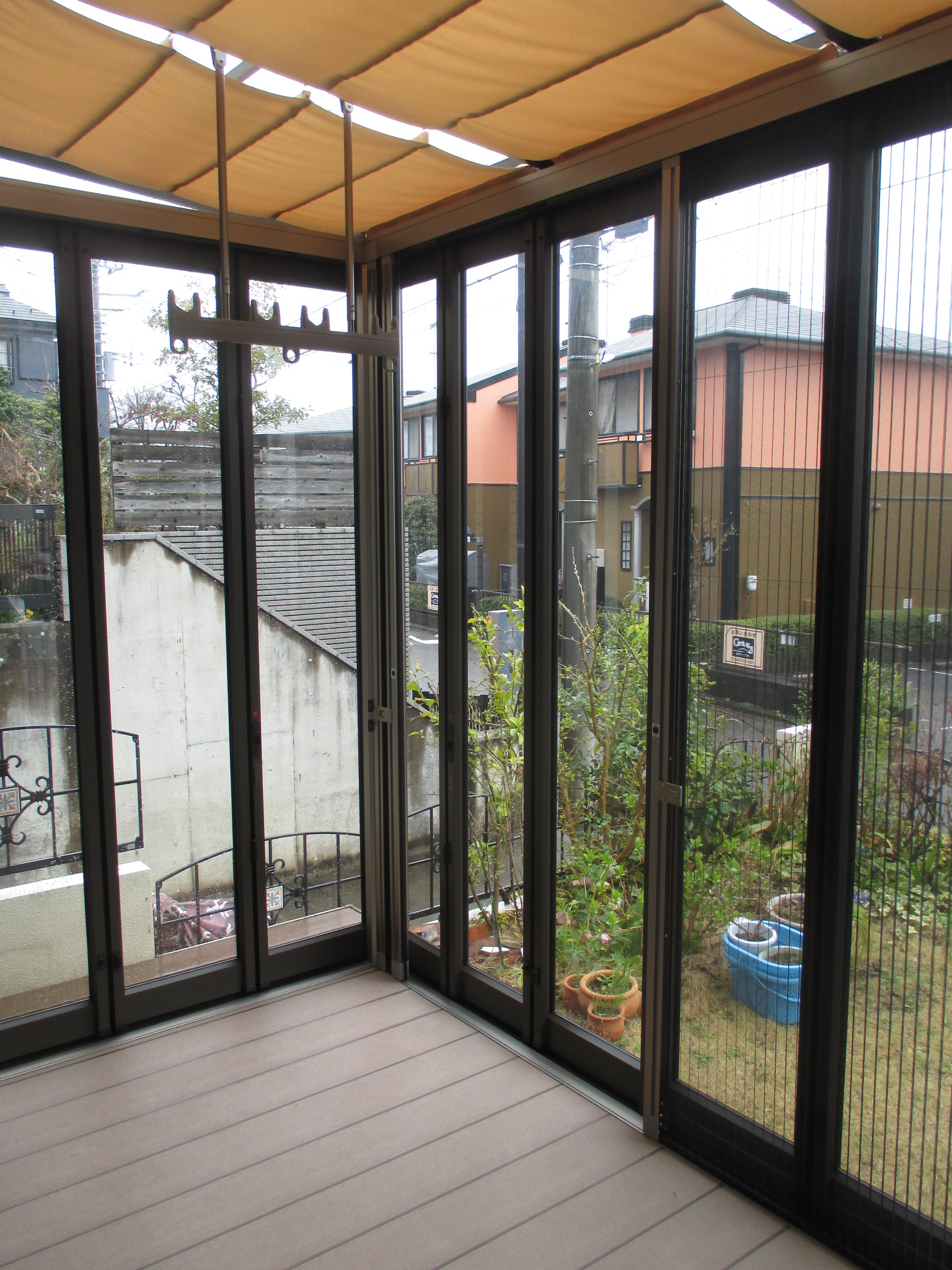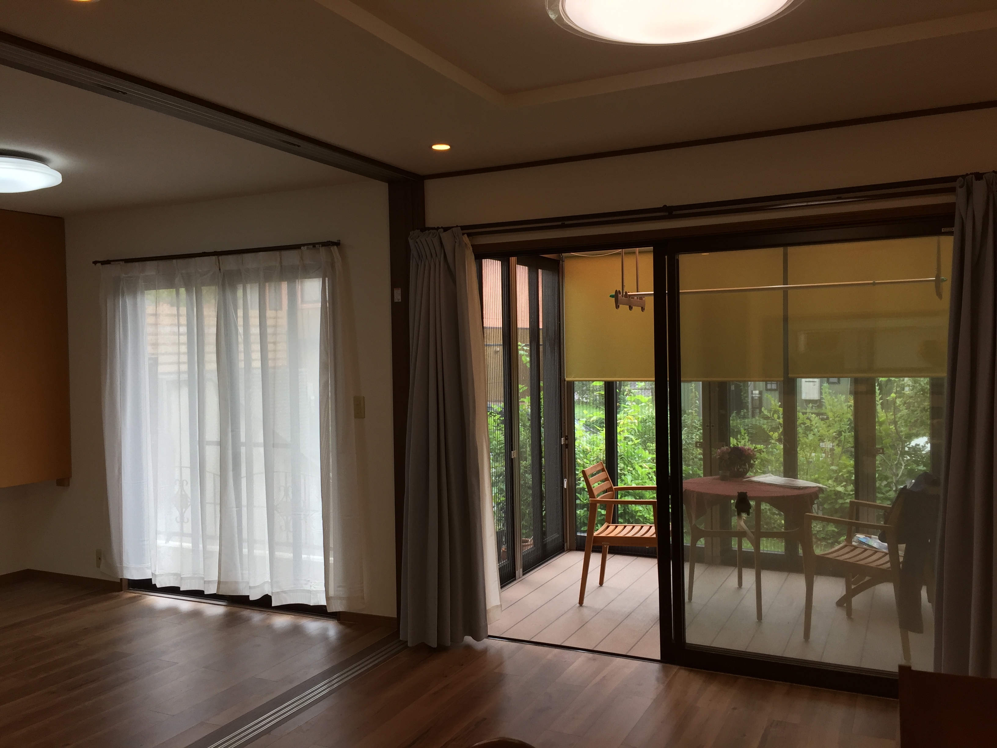 リビングから続くウッドデッキ。今まではそれで満足していましたが、定期的なメンテナンスが必要になり、その手間から解放されるために木材のデッキから樹脂製のデッキに交換しました。そうするとメンテナンスからは解放されましたが、そのフェイク感がどうも自然ではない。ということで、LIXILのガーデンルームにリフォーム。デッキは同じ樹脂素材なのに、自然の木材が練り込まれている為、いかにもなフェイク感は完全になくなりました。さらに屋根囲いがつきましたので、まるで部屋が増えたかのようなガーデンルームが完成しました。