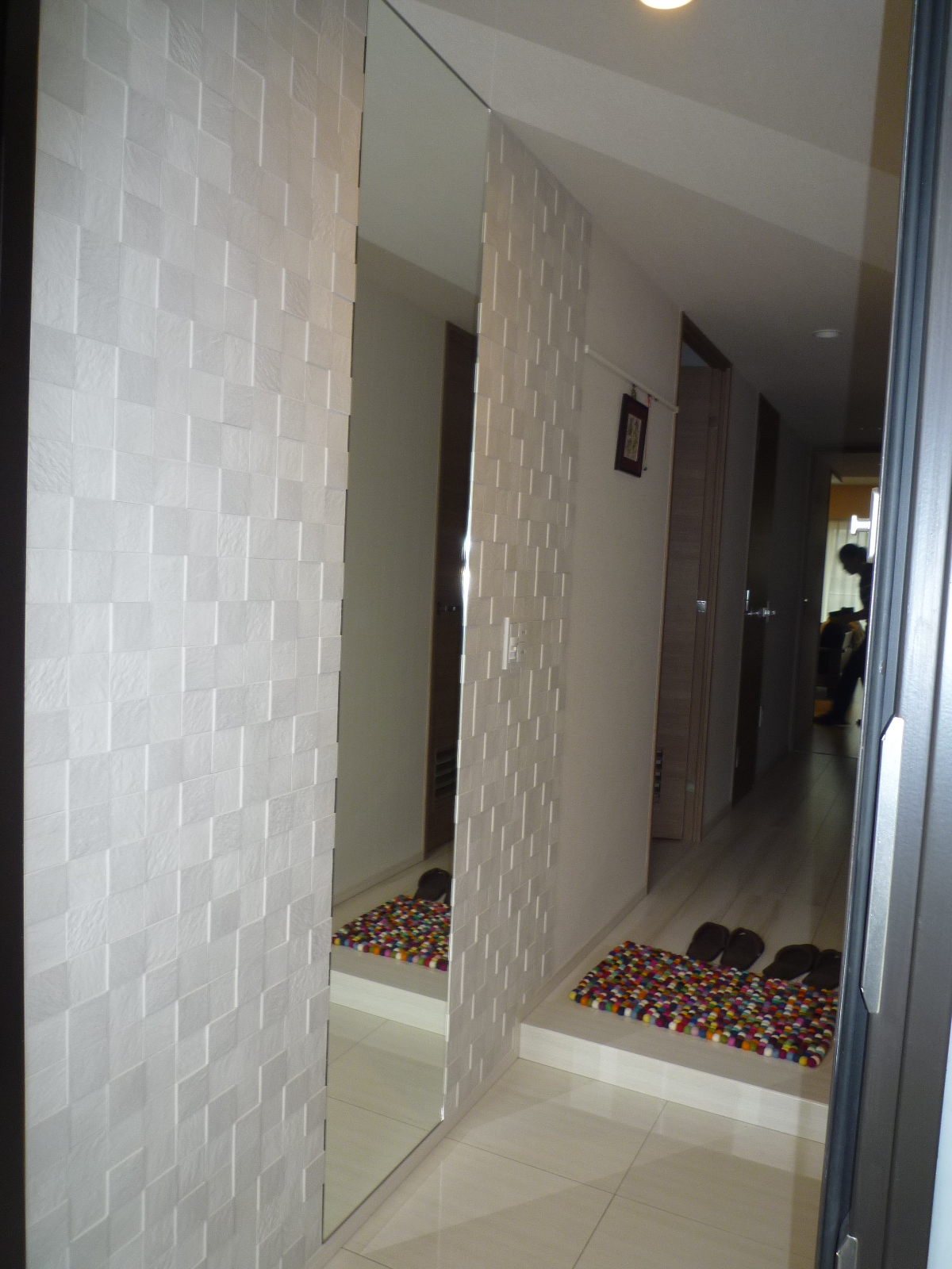 出かける時、帰宅した時、誰でも玄関ドアを開け閉めした時に、これがあると便利なものをご紹介します。条件その1、全身を確認することができる姿見がある。出かける前の身だしなみ確認は必須。条件その2、においがこもらない。靴やブーツ、普段の生活のにおいって玄関にこもりやすいもの。エコカラットタイルなら消臭機能付でにおいを解消します。条件その3、湿気を排除する。外気に近くて北側に設けられることが多い玄関。エコカラットならこもりやすい湿気も調整してくれます。