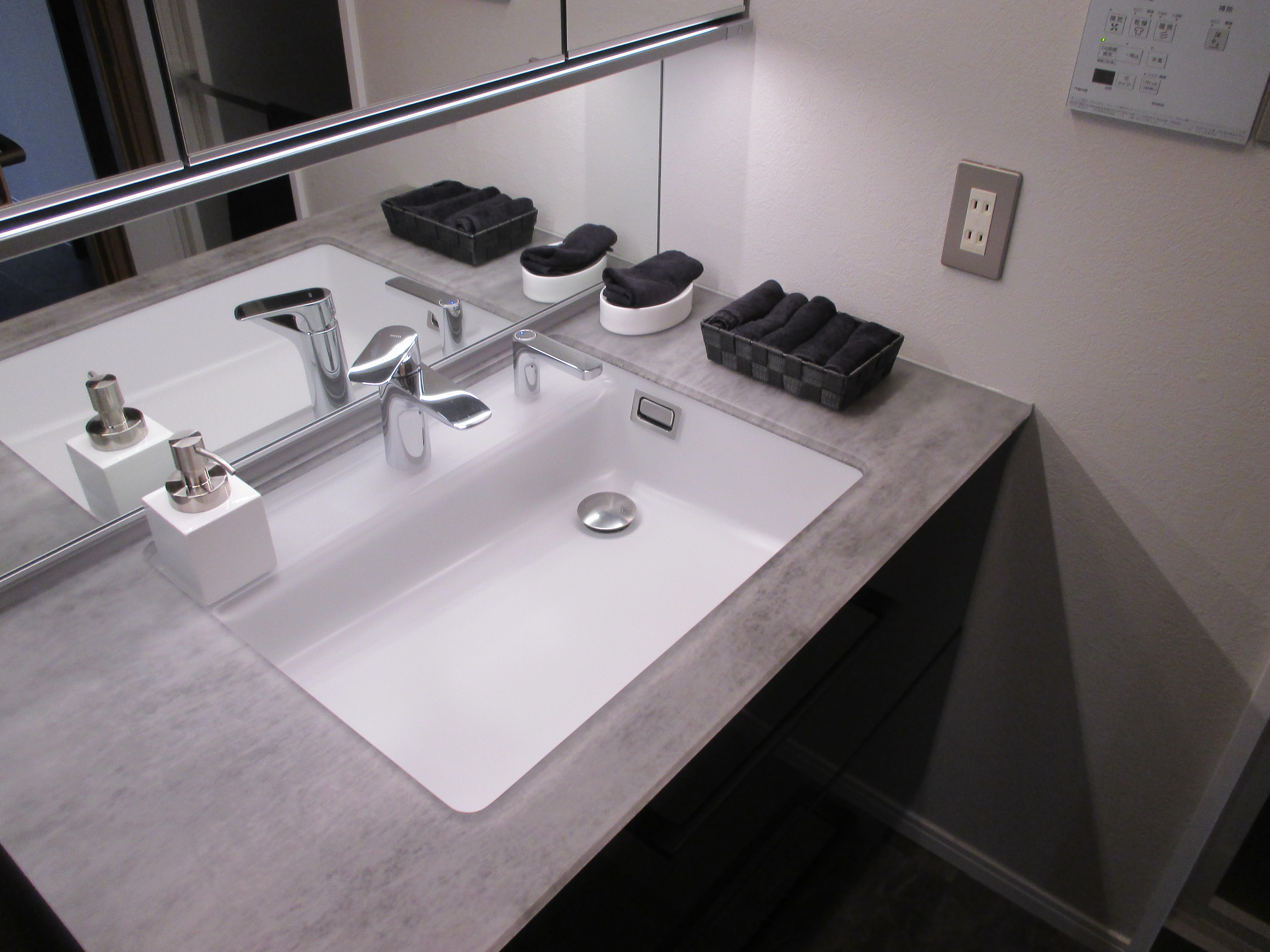 引き渡し後には、きれいなタオルを揃えて使っていただいています。小物もポイントとして引き立っています。
