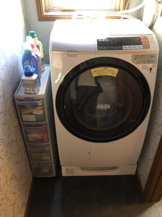 洗濯機パンを交換しましたジャストサイズにすることで壁との間に収納スペースができます洗剤やお掃除用具の収納場所となりました