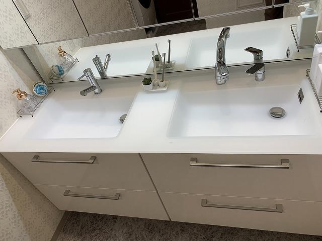朝の忙しい時間もダブルボウルの洗面台なら無駄なく時間を有効に使えます