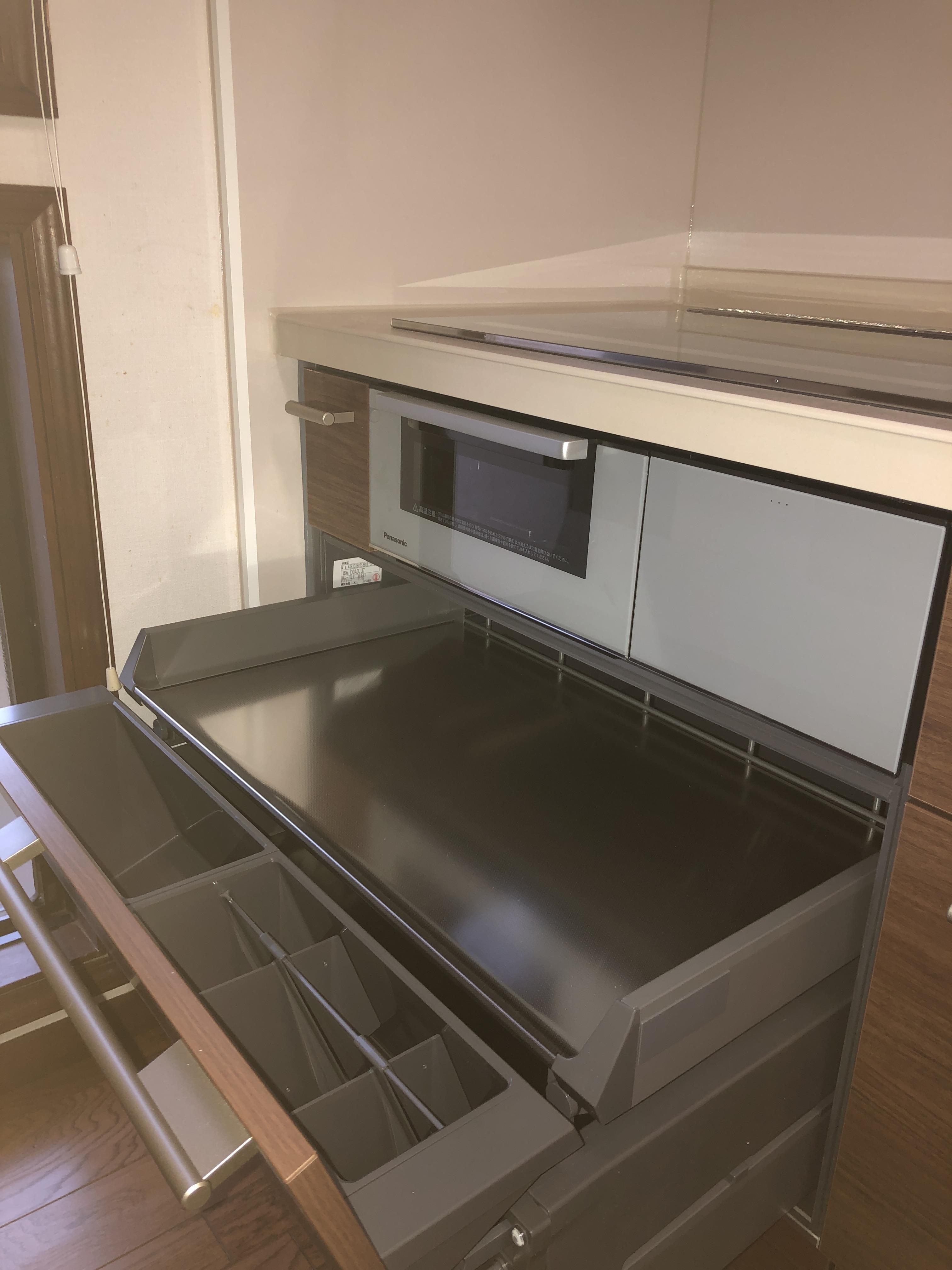 ワークトップには耐久性・耐熱性・清掃性の高い「セラミックトップ」、レンジフードはお掃除ラクラクな「よごれんフード」、シンクは3Mの大きさを活かした「ひろびろラクリーンシンク」、ウォールユニットには「ダウンウォール」や「クイックポケット」を設置し調味料などをスッキリ収納でき調理中にワークトップの上に物がいっぱいになってしまう困りごとを解消しました