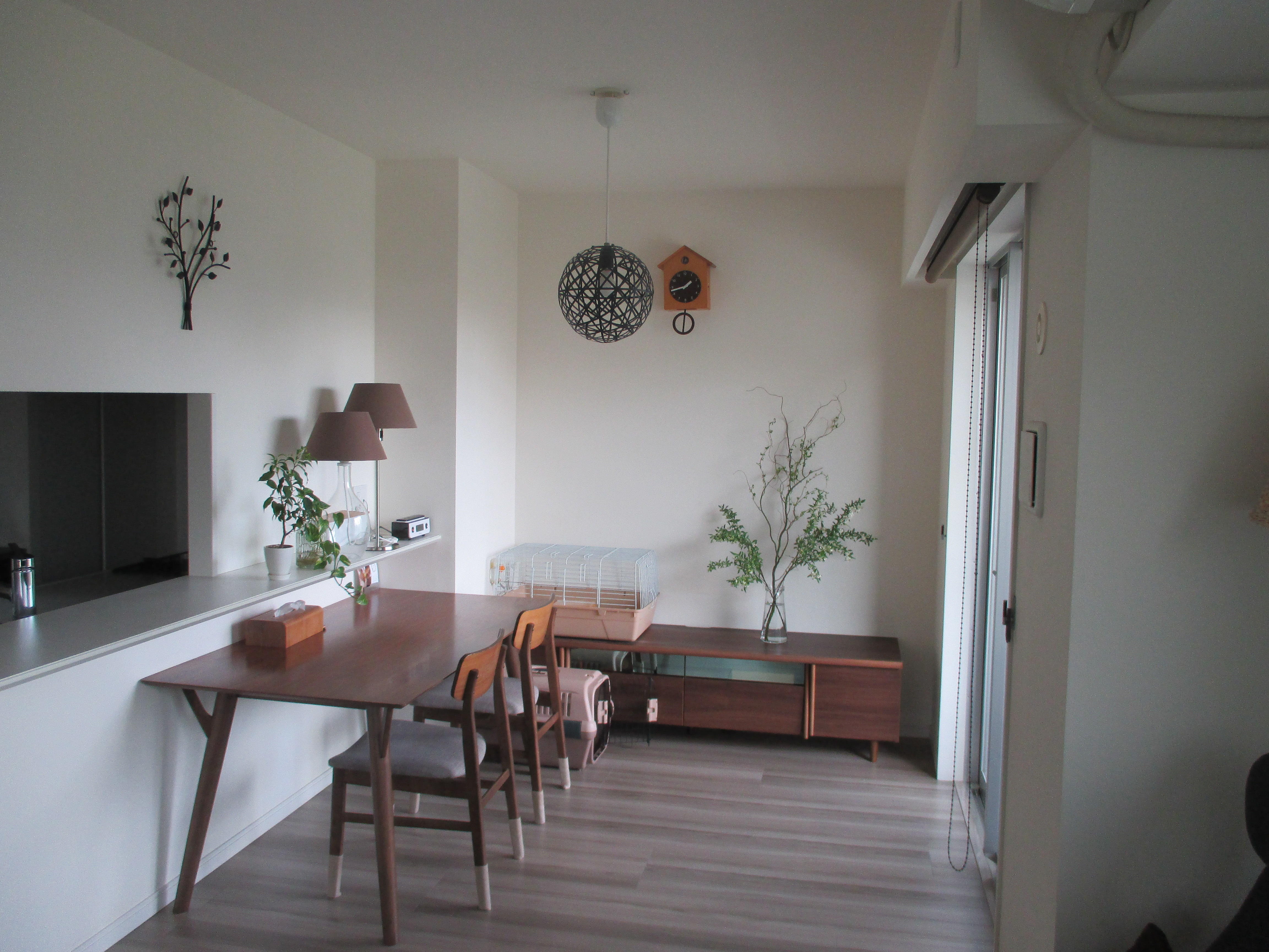 壁紙は既存の壁紙を剥がし、下地補修を行い新規の壁紙に貼り替えました