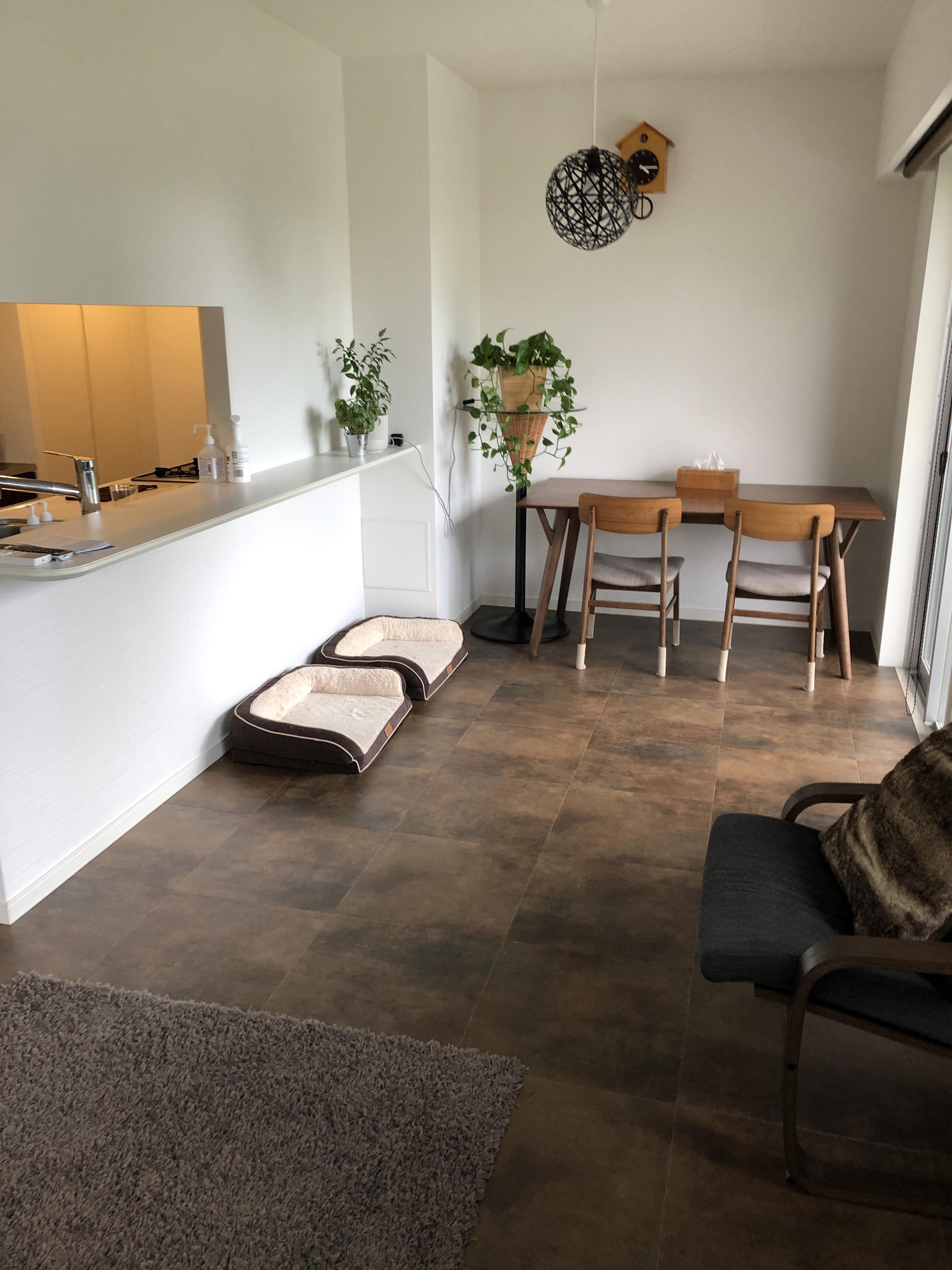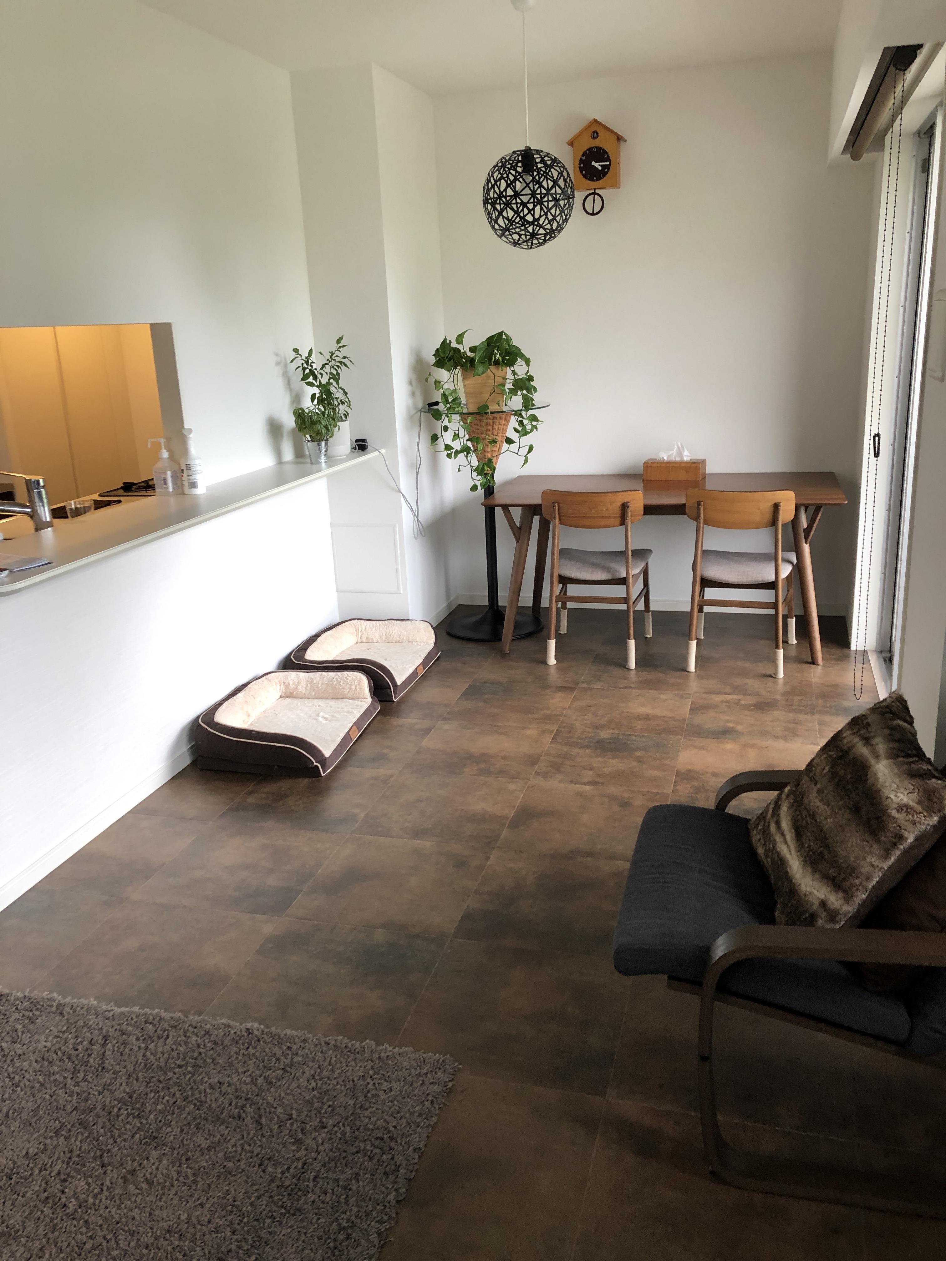 床材は既存のフローリングは残し、上からフロアタイルを施工する重ね張りにて施工しました