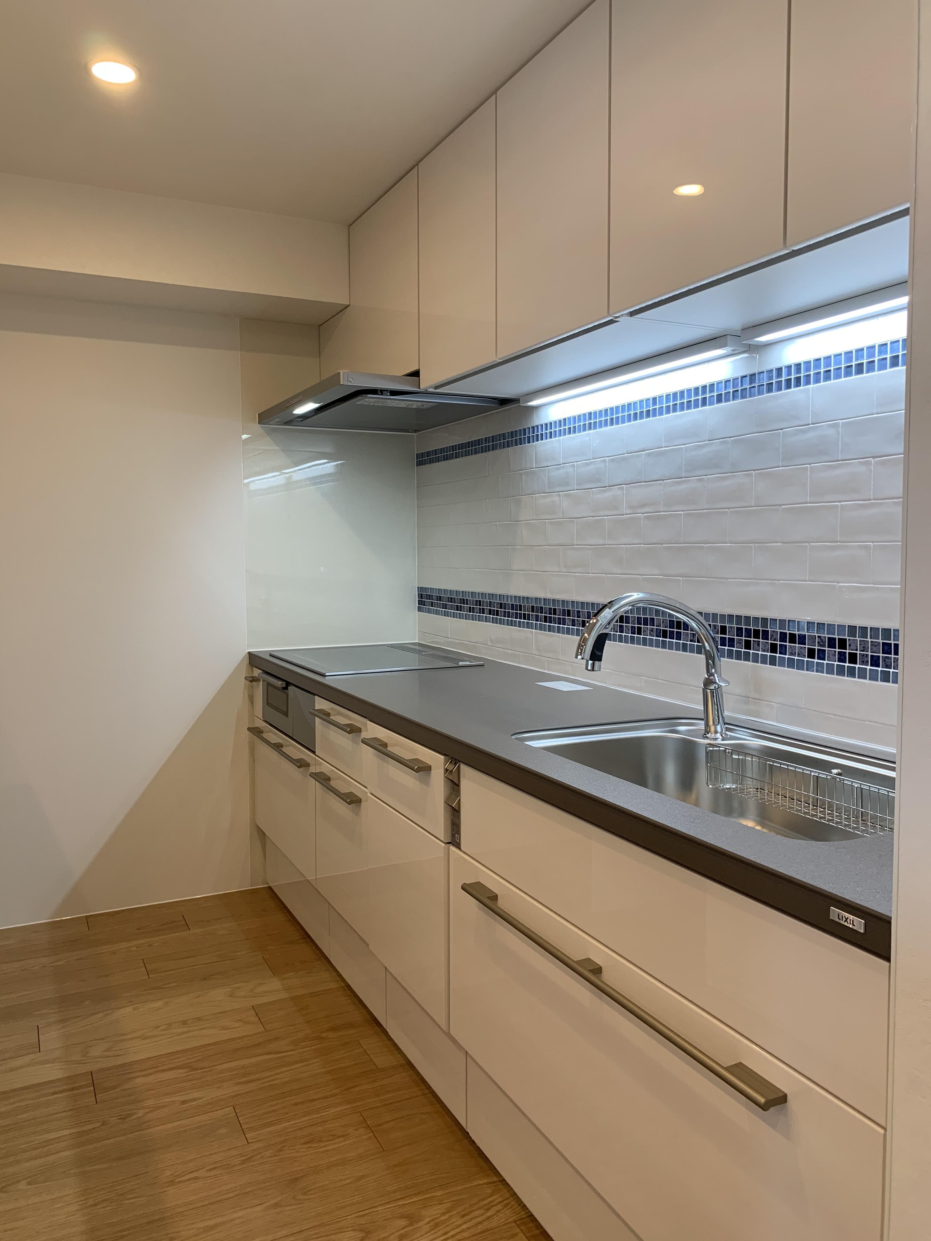 LIXIL リシェルSIをご採用いただきましたセラミックカウンターと扉の色合いがよく素敵な仕上がりになりました調理スペース全体が明るくなるように照明を設置正面には3種類のタイル材を組み合わせましたお施主様のご要望通りの素敵なキッチンスペースになりました
