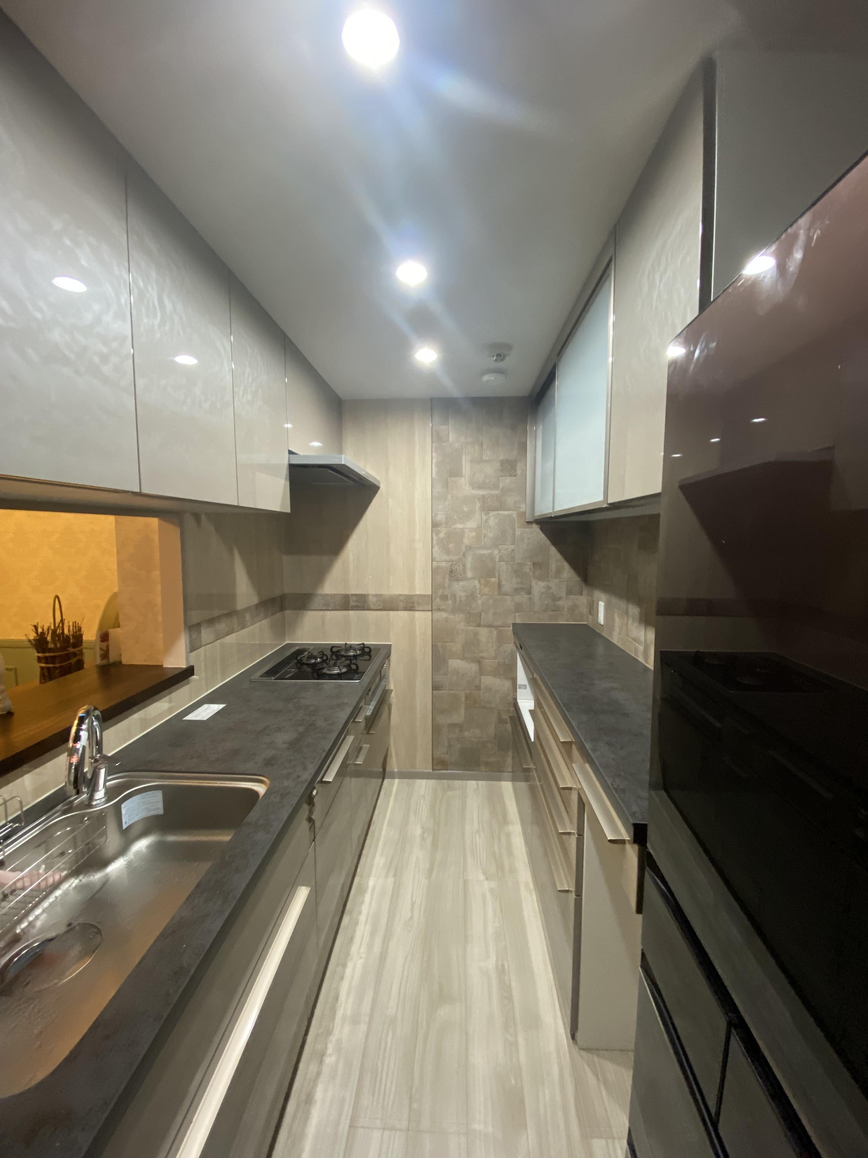 壁面のタイルに合わせてキッチン正面にラインでタイルを施工しましたキッチン周りは掃除しやすいキッチンパネルを施工していますタイルとパネルを組み合わせることでちょっとしたアクセントを取り入れることが可能です